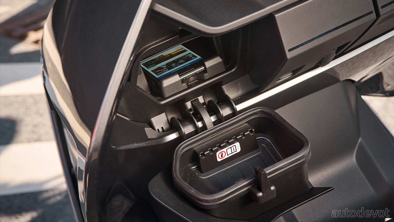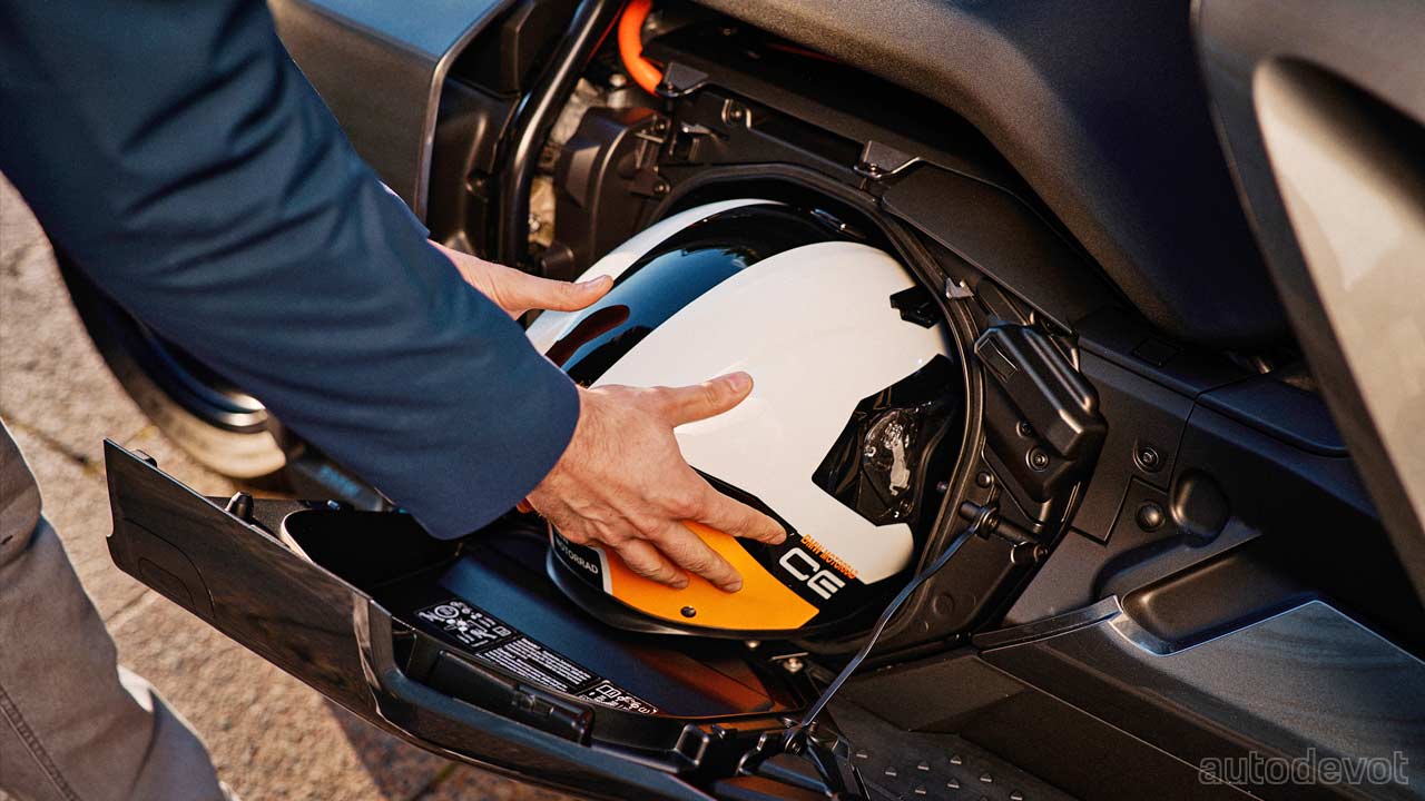 The production version doesn’t look all that different compared to the Definition CE 04, which is a good thing. The scooter retains all the key features such as LED headlights with integrated running lights, a 10.25-inch instrument display, side storage, and of course, the sci-fi movie looks. In case you’re wondering where the F are the taillights, well, the near-production prototype had proposed some kind of discreet taillights. Which means, it didn’t really have any. In the production version, however, those lights above the licence plate double as both turn signals and taillights.