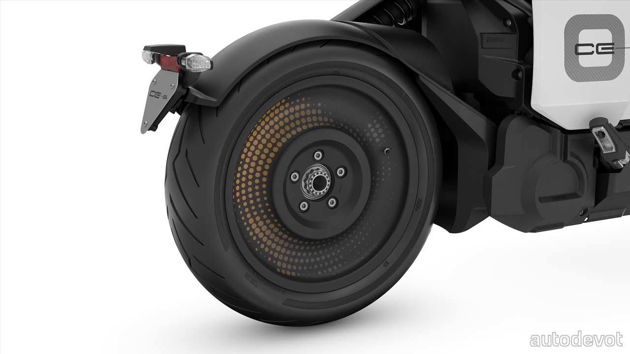 The CE 04 is powered by a permanent magnet electric motor mounted in the frame between the battery and the rear wheel. It develops a max output of 31 kW (42 metric hp) at 4,900 rpm and a max torque of 62 Nm (46 lb-ft) between 0-4,900 rpm. The scooter is claimed to do 0-50 km/h (31 mph) in 2.6 seconds, while the top speed is limited to 120 km/h (75 mph).