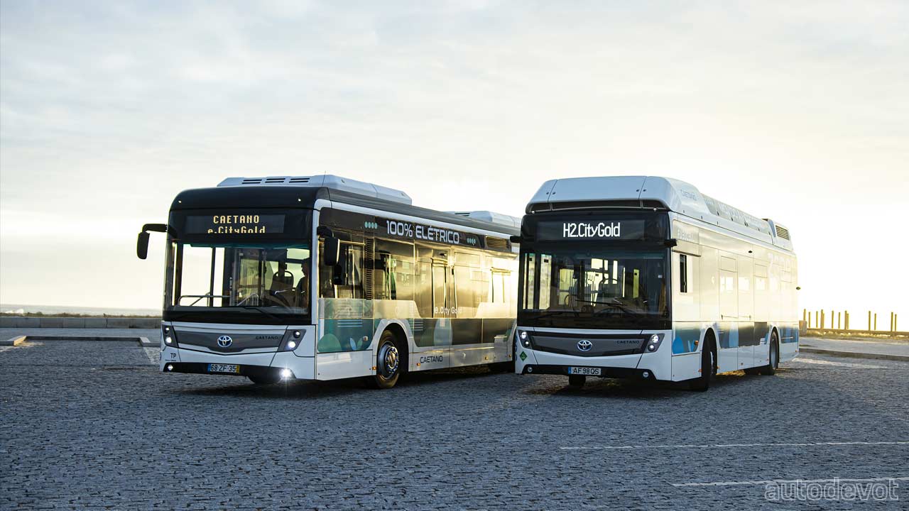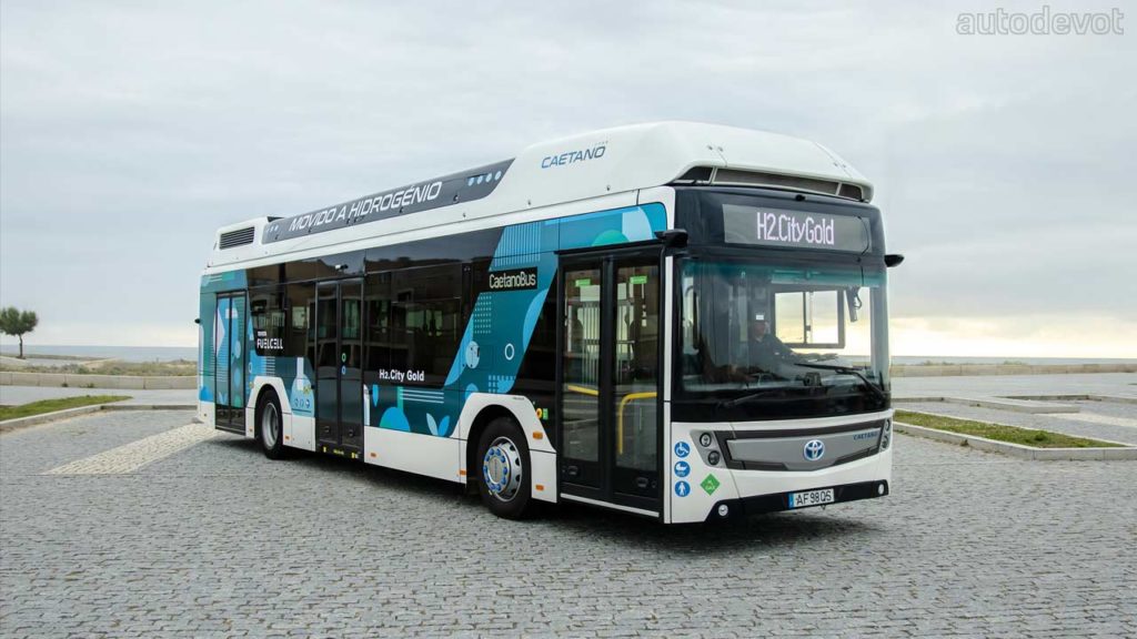 Toyota Motor Europe (TME) not only supplies the fuel cell technology to Portugal’s CaetanoBus but also owns a controlling stake in the busmaker via a joint venture. Which is why TME decided to put its badges on both the battery electric — e.City Gold and the fuel cell electric — H2.City Gold buses. It’s a clever co-branding strategy to showcase the Japanese giant’s other ventures beyond cars.