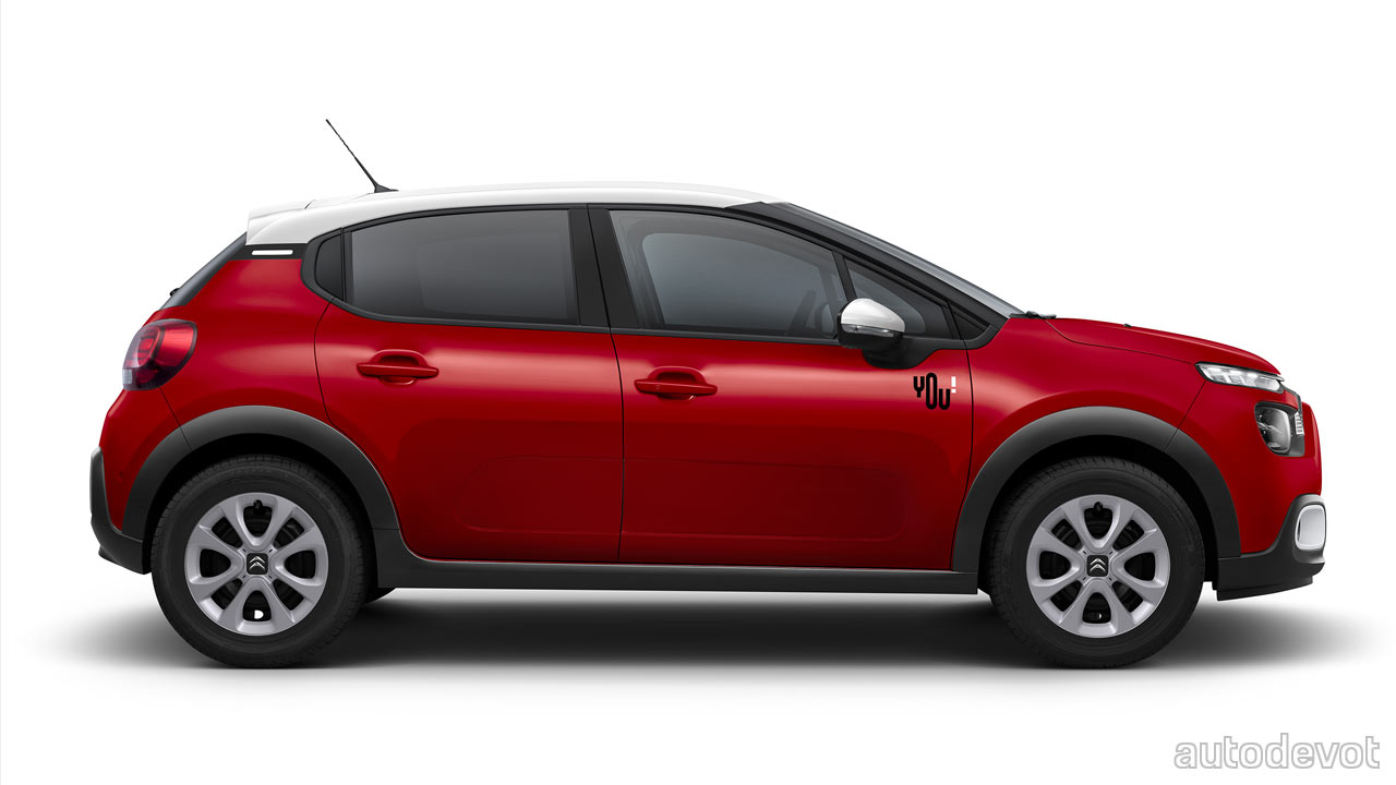 As you might be aware, the entry-level trims don’t look all that interesting, and so, the C3 YOU! fixes this problem by adding front fog lamps in a white housing, white mirror caps, a white sticker/line on the C-pillar, and of course, the “YOU!” branding on the front doors. Those who dig this white thing, can even go for an optional Opal White roof for a proper dual-tone theme. Besides the Elixir Red, other exterior color options include Sand, Perla Nera Black, Steel Gray, Platinium Gray and Ice White.