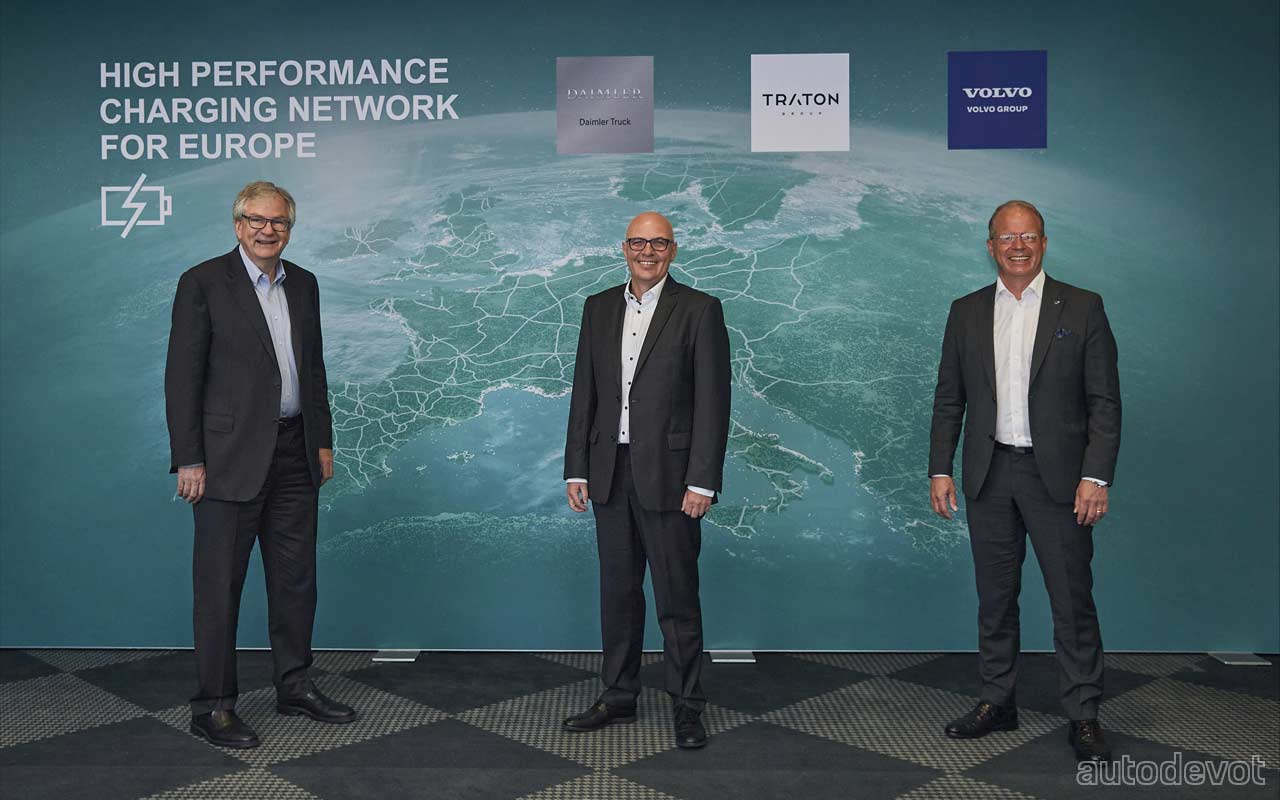 Three leading commercial vehicle manufacturers — Daimler Trucks, Traton Group and Volvo Group have signed a non-binding agreement to install and operate a high-performance public charging network for battery electric heavy-duty long-haul trucks across Europe. A future joint venture (JV) — equally owned by the three parties, is expected to start operations in 2022.