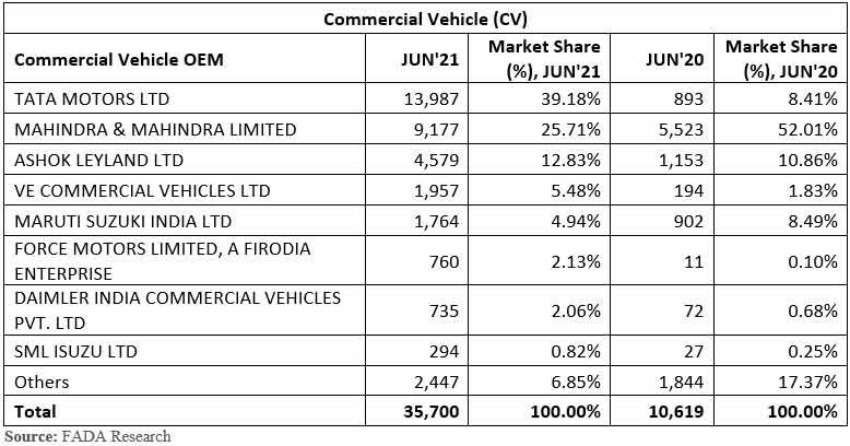 The Commercial Vehicles segment seems to have done a great job with over 236% growth in June 2021 compared to the same period last year. FADA President Vinkesh Gulati had the following to say –