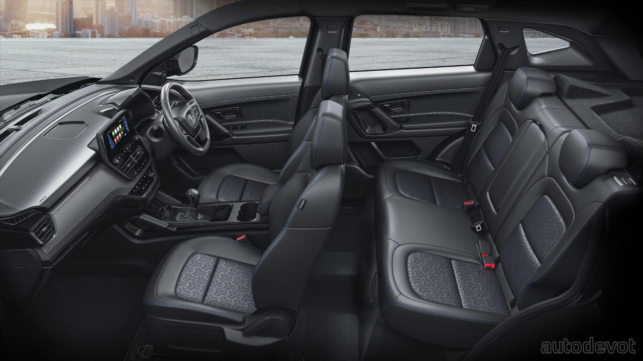 The interior features an all Granite Black theme with gloss black appliques on the centre console. Premium leatherette seats with tri-arrow perforations, blue contrast stitching, and “#Dark” embroidery on the front headrests round off the package. The rest of the features have been carried over from the XZ+ trim.