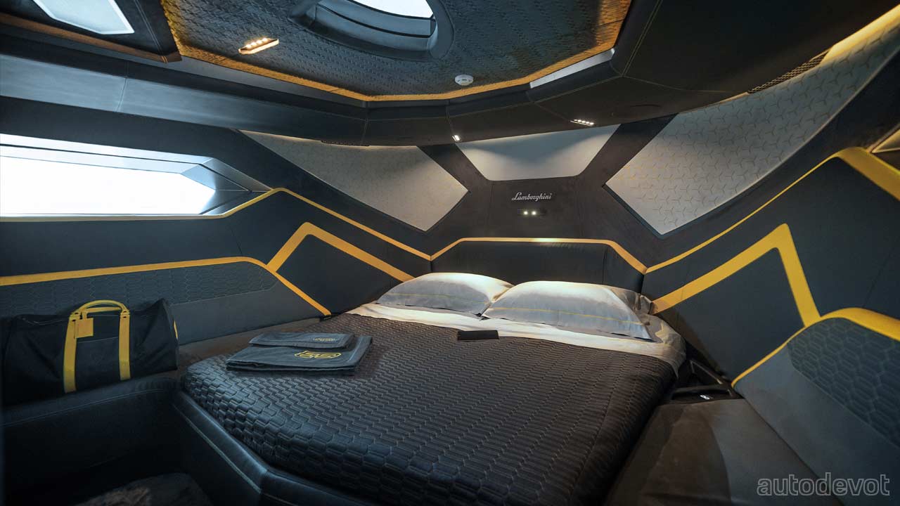 The superyacht is a collaboration between The Italian Sea Group’s Tecnomar line of yachts and Lamborghini. The latter’s Centro Stile has added Sian-inspired styling elements to the yacht. The 63 in the name not only refers to Lamborghini’s founding year but also to the length of the yacht (63 feet).