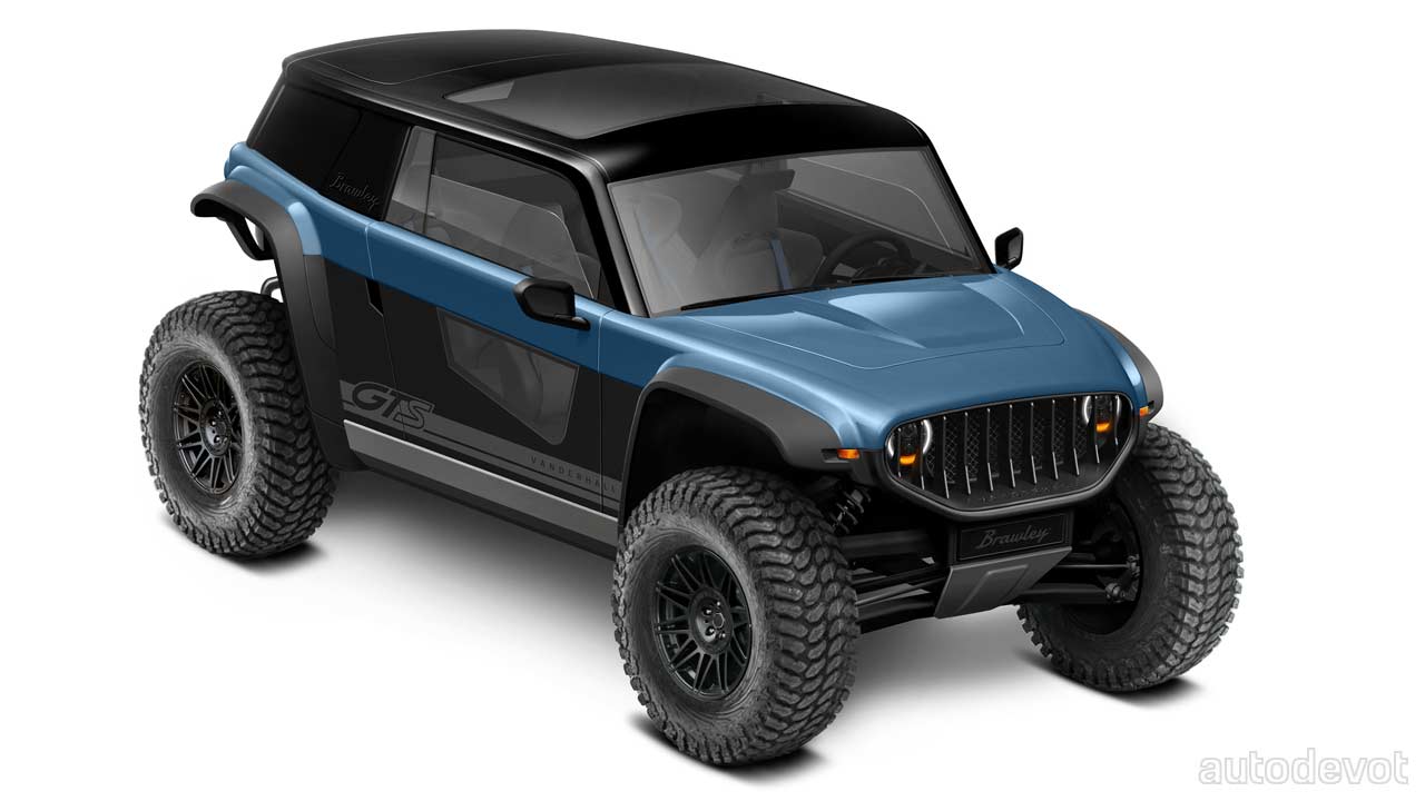 From the front and front-three quarter angles, the Brawley looks just like how an all-electric Wrangler concept would look; let’s hope that Stellantis’ lawyers don’t send a notice to Vanderhall. Other than that, the Brawley boasts 18-inch wheels wrapped with 35-inch off-road tyres and up to 22-inches of suspension travel.