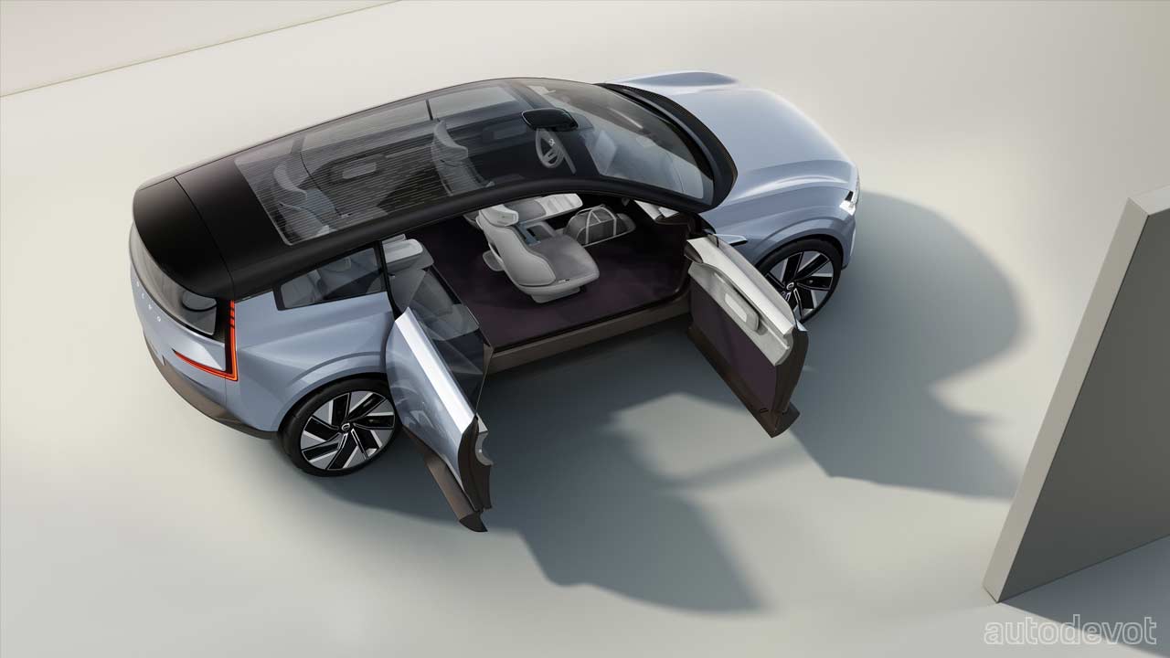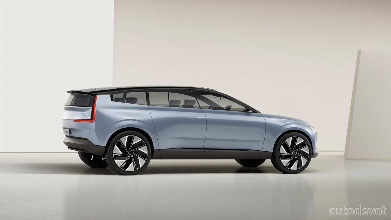 Which means the vehicle will be built on a new electric-only platform, enabling a flat floor and therefore a more roomy cabin. Also, notice the insanely long wheelbase. Although the concept looks like a strange mix of a station wagon and an MPV, Volvo wants you to consider this as an SUV.