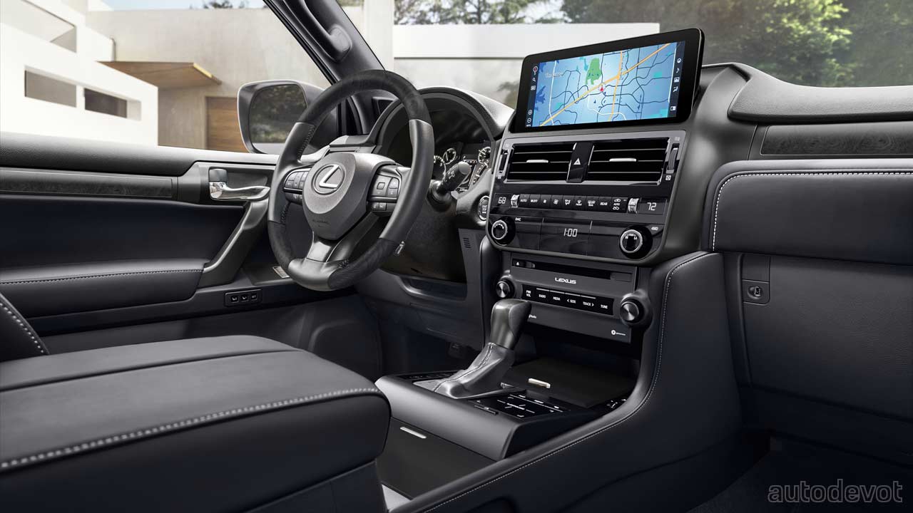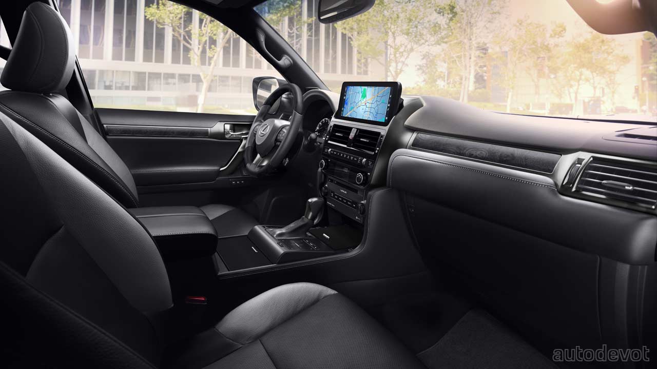 Inside, the GX Black Line features a black headliner; black and gray NuLuxe dual-tone upholstery with gray contrast stitching; and open-pore Ash Wood inlays. Other features include a 10.3-inch touchscreen, 10-way power-adjustable front seats, heating and ventilation for front seats, three-zone climate control, power moonroof, Kinetic Dynamic Suspension System (KDSS), and a host of standard active safety and driver assistance systems including Pre-Collision System with Pedestrian Detection, Lane Departure Alert, High-Speed Dynamic Radar Cruise Control, and Blind Spot Monitor with Rear Cross-Traffic Alert.