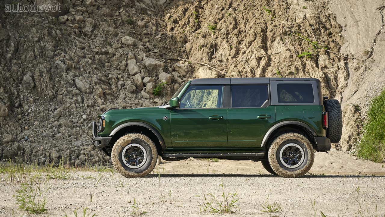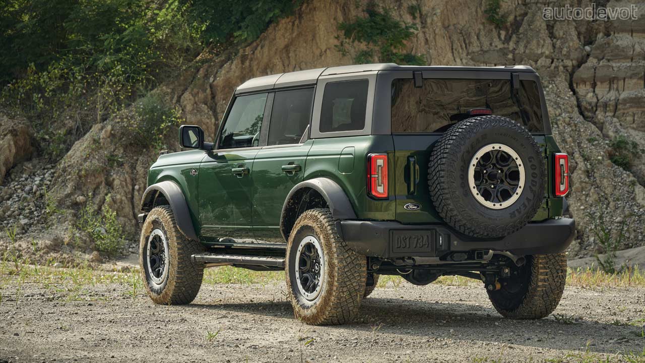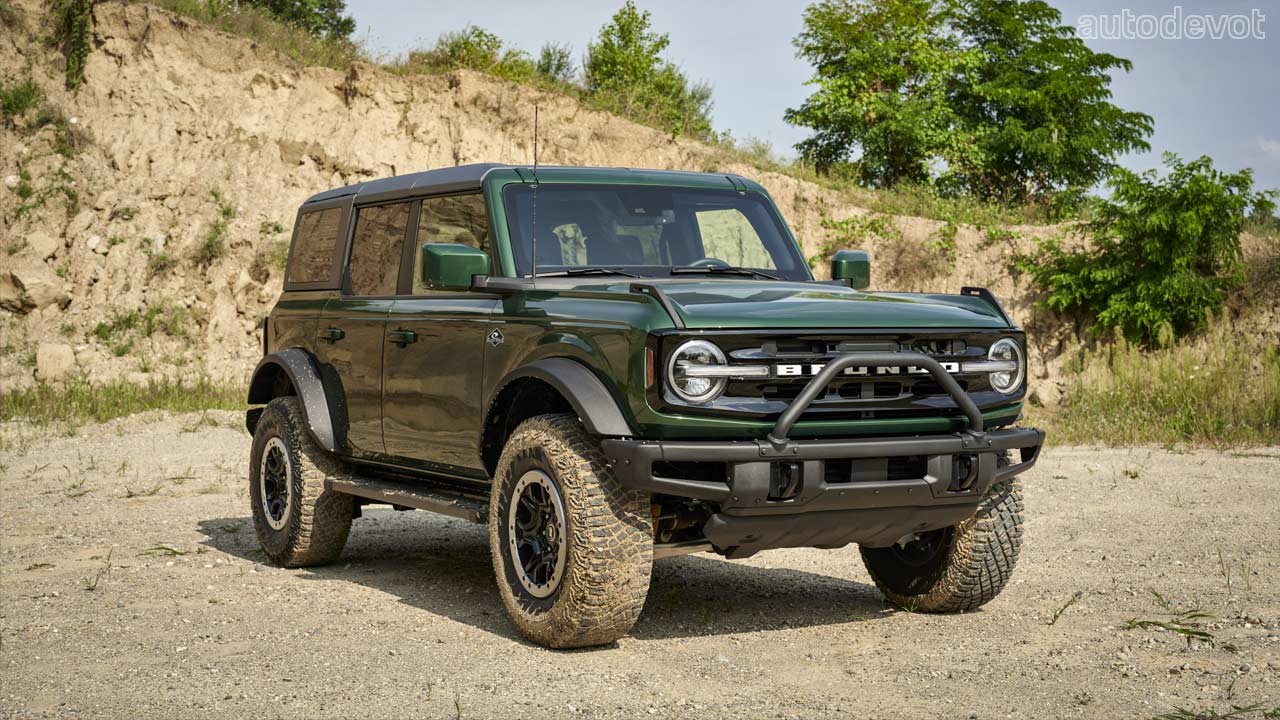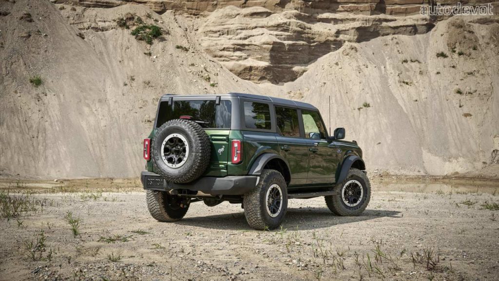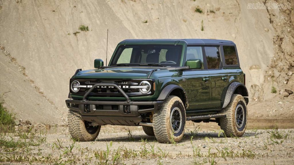 Ford is adding two new colors—Eruption Green Metallic and Hot Pepper Red Metallic—to the 2022 Bronco color palette, available to order later this year. Apparently, the Eruption Green was demanded by enthusiasts and is a modern interpretation of the 1970s Mallard Green-painted Broncos.