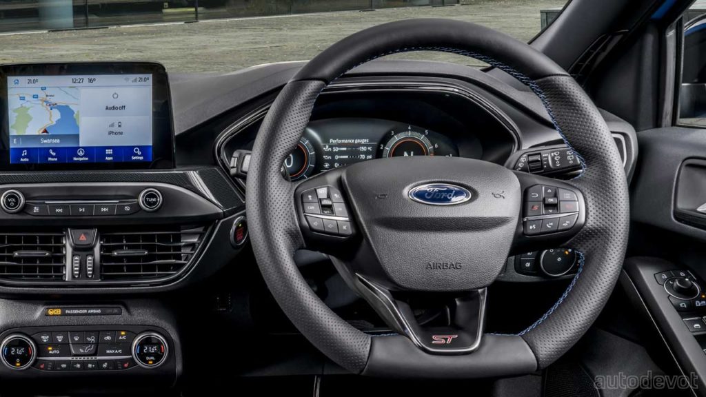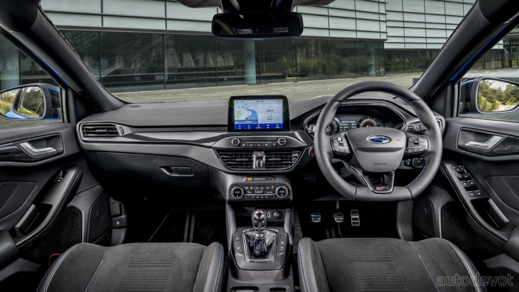 As for the juicy bits, the Focus ST Edition packs a 2.3-litre 4-cylinder EcoBoost (turbo) petrol engine with 206 kW (280 metric hp) at 5,500 rpm and 420 Nm (310 lb-ft) of torque from 3,000 rpm to 4,000 rpm. Transmission options will be a 6-speed manual or a 7-speed automatic. The official performance figures are as follows: 0-100 km/h (62 mph) in 5.7 seconds and top speed is 250 km/h (155 mph). There’s a dedicated Track mode as well that is claimed to offer the sharpest response.