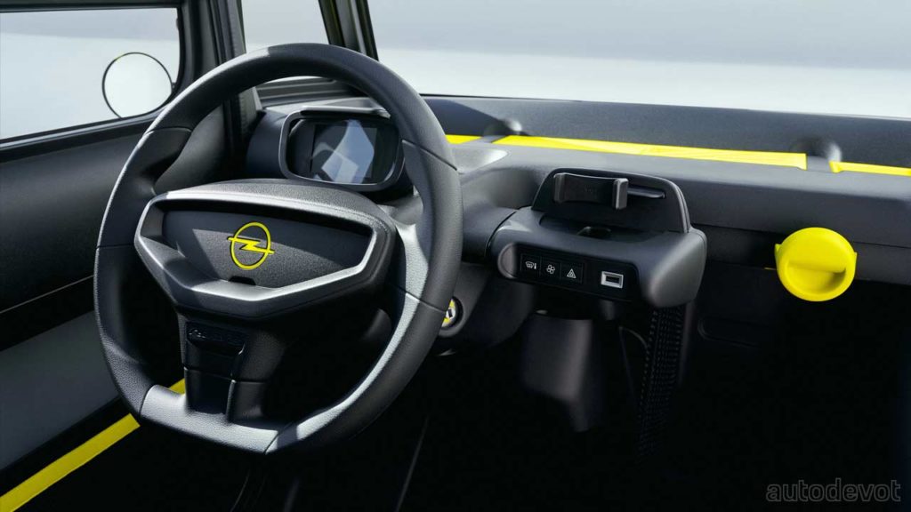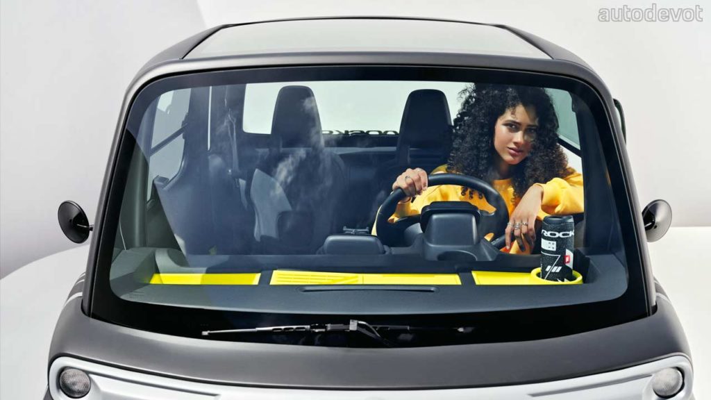 The Rocks-e looks just as cute as the Ami with its cartoonish looks. Except for the Opel badges front and rear and a unique livery with yellow accents, there aren’t many differences; not that the differences are mandatory in this case. That said, the wheel design (14-inches) is different.