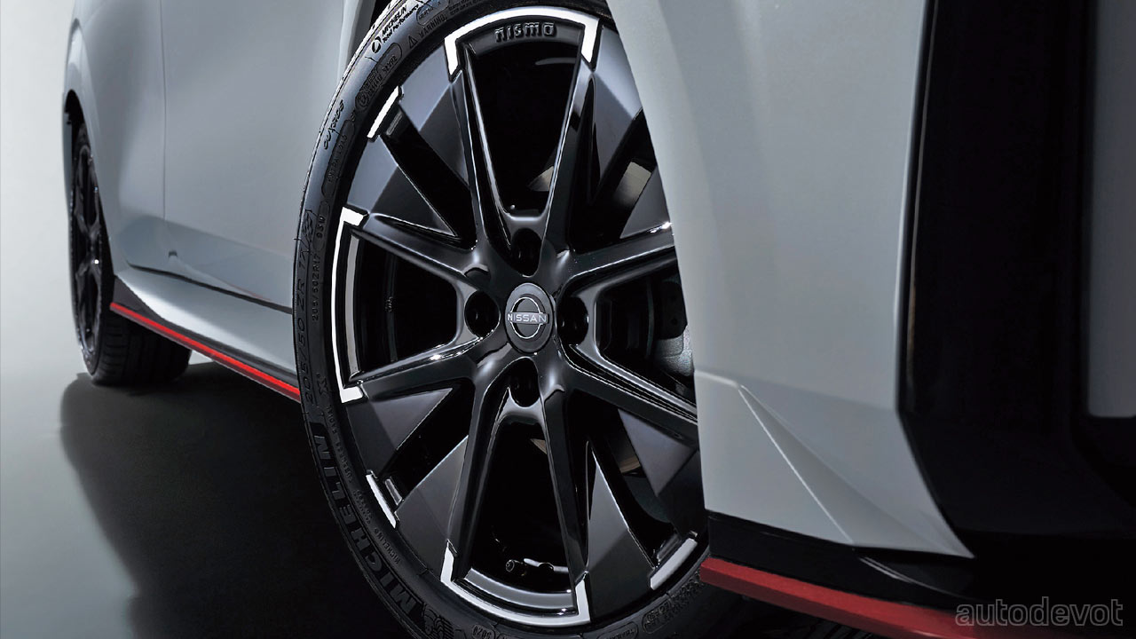 Nismo touches include sporty front and rear bumpers, aerodynamically optimized 17-inch aluminum wheels, and of course, red accents. Buyers get to choose from five exterior paint options, of which, four are two-tone combinations with black being applied to the roof, pillars and the centre of the bonnet.