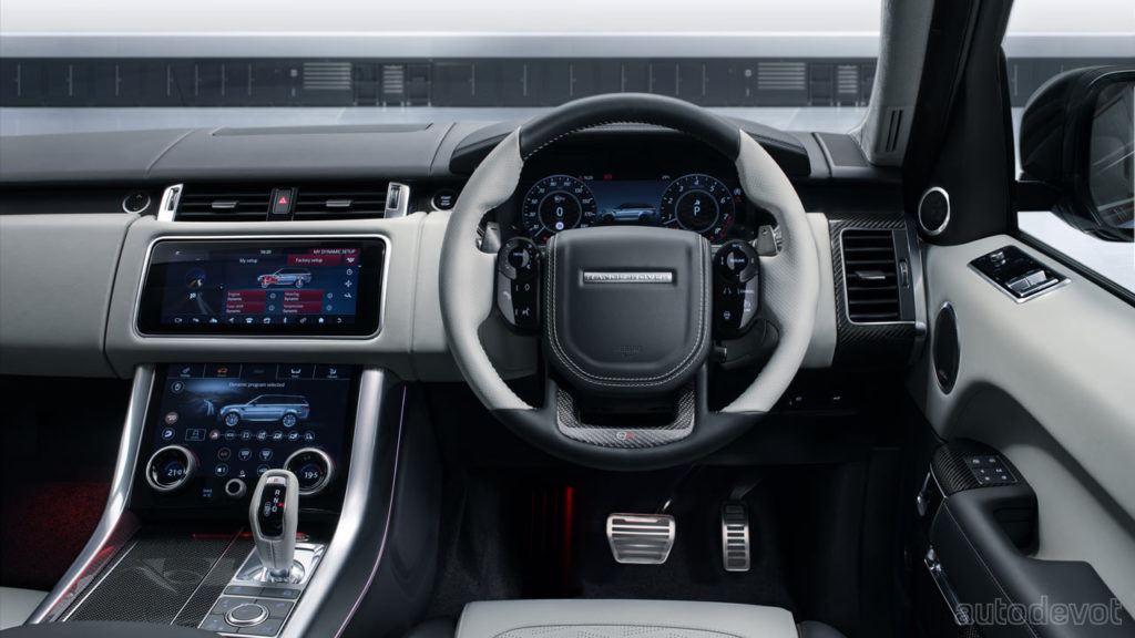 Inside, the SVR Ultimate edition features SV Bespoke B-pillar badges, black anodized metal gearshift paddles, Ultimate edition illuminated treadplates, and SVR-embossed lightweight Performance Seats in Windsor leather.