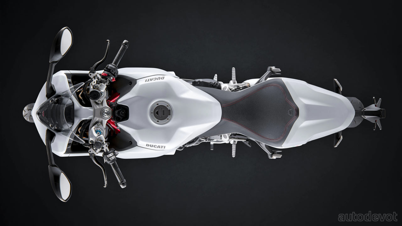 Common features on both variants include an adjustable windscreen; a 4.3-inch TFT display; three riding modes (Sport, Touring, Urban); electronics package that includes Bosch Cornering ABS, Ducati Traction Control EVO, Ducati Wheelie Control EVO, Ducati Quick Shift up/down EVO; USB socket under the seat, and 320 mm discs at the front gripped by Brembo calipers.