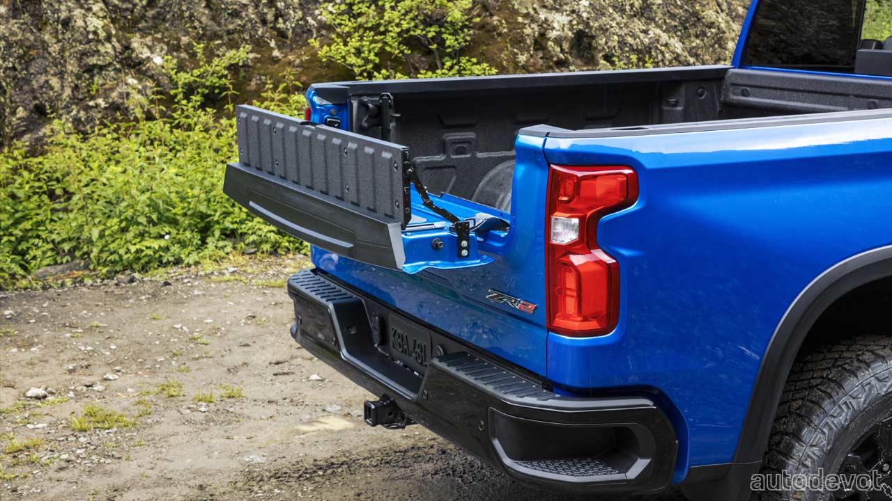 Highlights of the first-ever Silverado ZR2 include Multimatic DSSV 40 mm spool-valve dampers which feature separate spool valves to control damping, and three connected chambers for fluid flow; front and rear e-lockers; specific off-road chassis and suspension calibrations, including Terrain Mode, which allows one-pedal rock crawling; specific 33-inch off-road MT tires; a unique front skid plate, and 31.8-degree approach angle.
