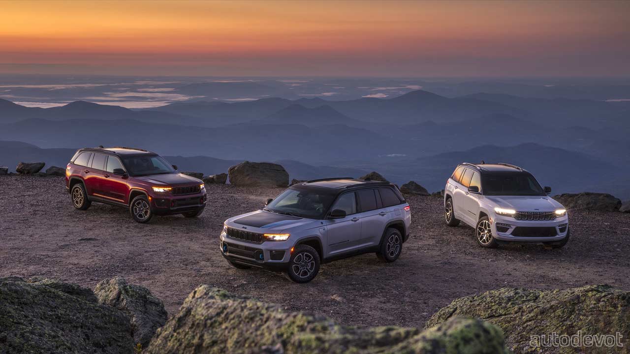 The 4xe PHEV powertrain is available with Limited, Trailhawk, Overland, Summit and Summit Reserve trims. It combines a 2.0L 4-cylinder turbocharged petrol engine, two electric motors, a 17 kWh 400-volt battery pack, and TorqueFlite 8-speed automatic transmission. The powertrain delivers a combined 280 kW (381 metric hp) and 637 Nm (470 lb-ft) of torque. Jeep is targeting 25 miles (40 km) of all-electric range, a 57 MPGe fuel economy and a total range of more than 440 miles (708 km).