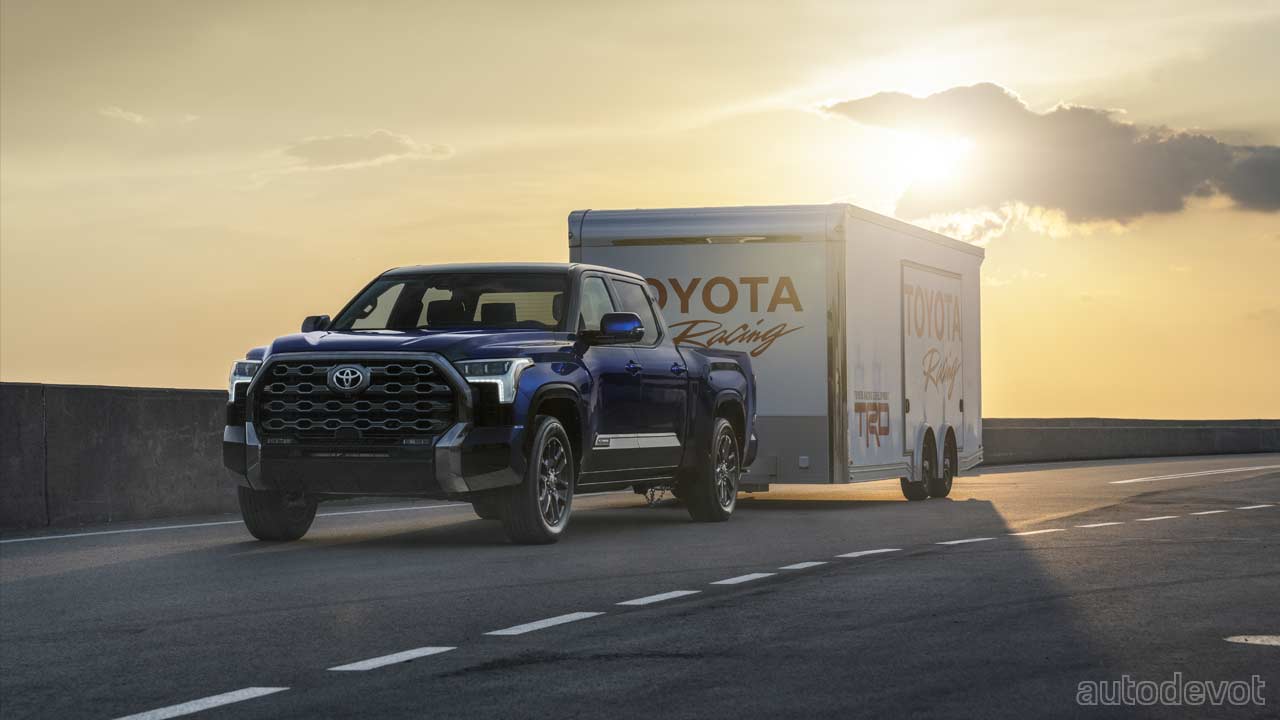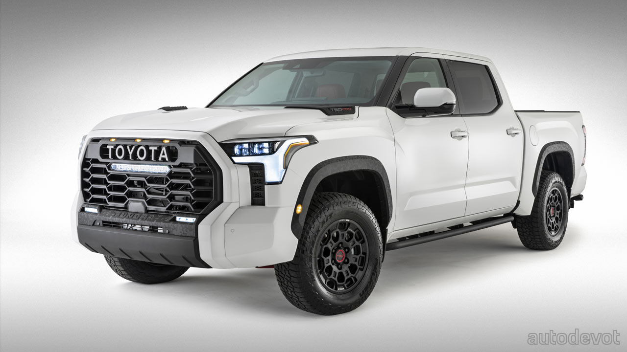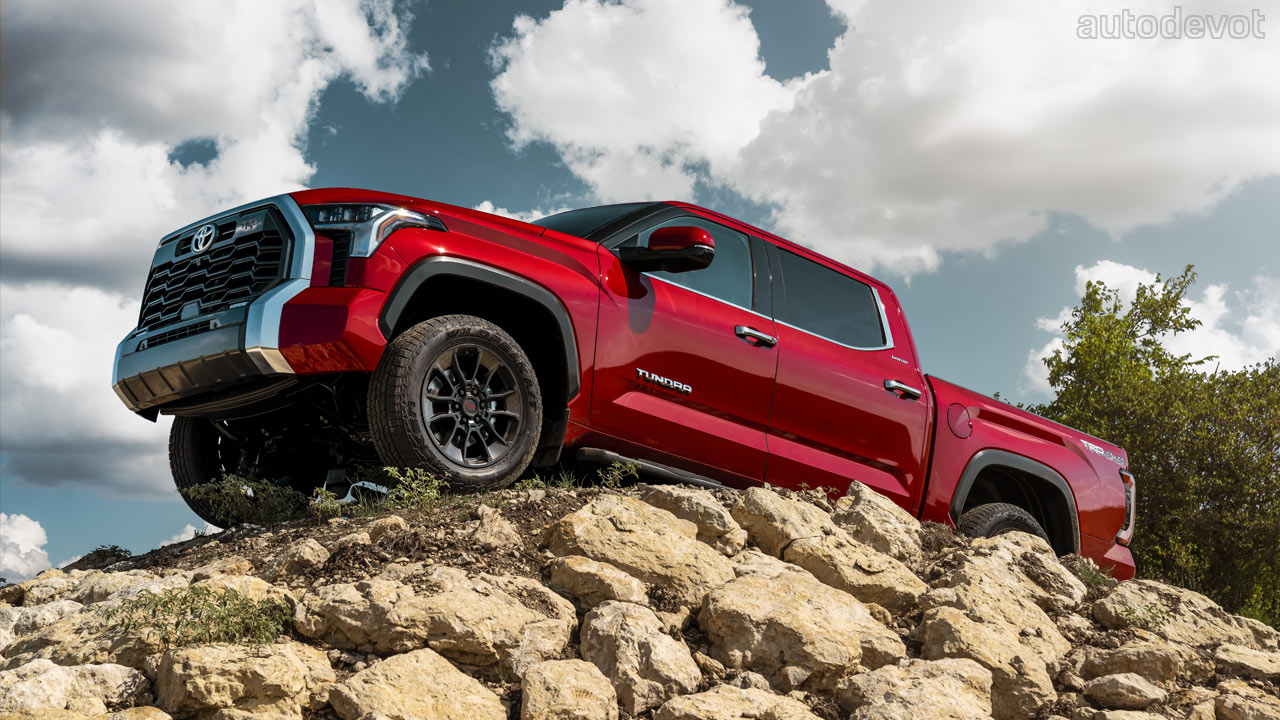 Speaking of the suspension, at the front is a newly developed double wishbone setup that is claimed to reduce body roll especially when cornering, and enhance ride comfort. At the rear, there’s a new multi-link setup that ditches leaf springs in favor of coils. TRD Pro trims are fitted with 2.5-inch diameter FOX internal bypass shocks, with the front shocks offering a 1.1-inch lift. A rear air suspension system is available on certain trims. Adaptive Variable Suspension (AVS) system is also available for the first time on Tundra.