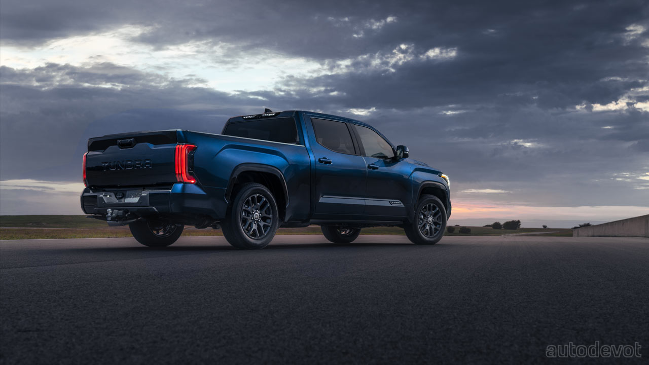 Moving on to the juicy bits of the story then, the new Tundra is powered by a 3.5L twin-turbo V6 engine (dubbed as i-Force) as standard, which produces 290 kW (389 bhp/394 metric hp) and 649 Nm (479 lb-ft) of torque, paired with a 10-speed automatic transmission. The same engine is available in combination with a hybrid system (dubbed as i-Force Max), where a motor-generator is nestled between the engine and a 10-speed automatic transmission. In this case, the output figures are 326 kW (437 bhp/443 metric hp) at 5,200 rpm and 790 Nm (583 lb-ft) of torque at 2,400 rpm. A 288-volt Nickel-Metal Hydride (Ni-MH) battery pack resides under the rear passenger seats.