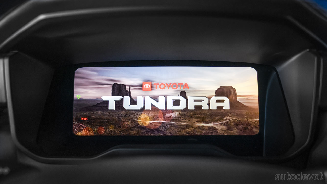 Inside, the new Tundra features an optional 14-inch touchscreen (8-inch standard), wireless Apple CarPlay & Android Auto connectivity, an optional 12.3-inch driver display (standard on Platinum, 1794 and TRD Pro), heated and ventilated front seats, and an optional panoramic glass roof. A Multi-Terrain Monitor is available on TRD Pro trim and TRD Off-Road package, which allows the driver to check the surroundings on the display.