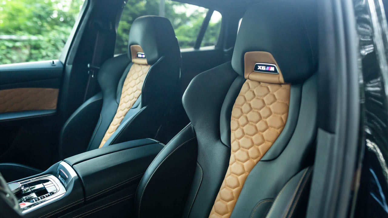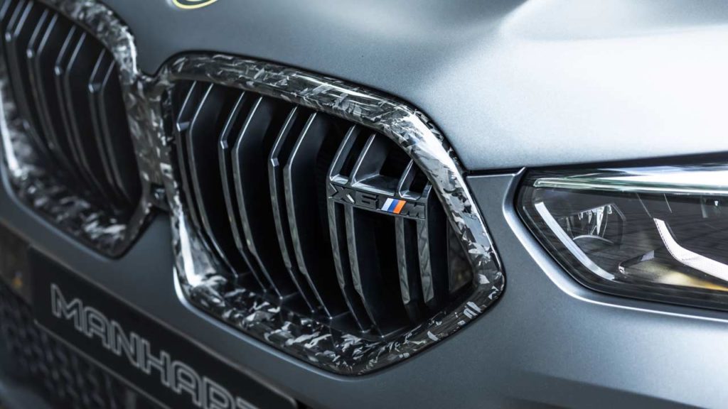 The 24-piece bodykit is made of forged carbon, with an irregular fibre structure reminiscent of polished marble or granite. These include a front spoiler, Kidney grille, exterior mirror caps, wheel arch inserts, side skirts, two-part rear spoiler, and a rear diffuser. The bonnet is also made of forged carbon, and features louvres with the same, irregular fibre structure. The rest of the body is wrapped in a matte Charcoal wrap with gloss black Manhart decals. The SUV rides on 22-inch satin black forged wheels. And finally, H&R lowering springs lower the ride height by 30 mm.