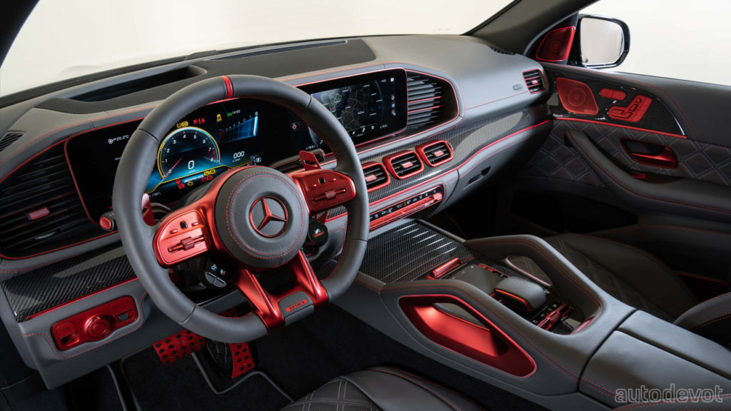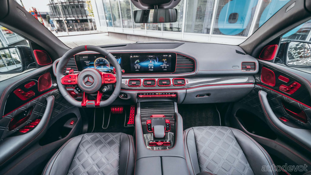The cabin has a lot of bling with more than sufficient red elements; kinda gives me Mansory vibes, just like in the Brabus 900 Rocket G 63 that we saw not too long ago.