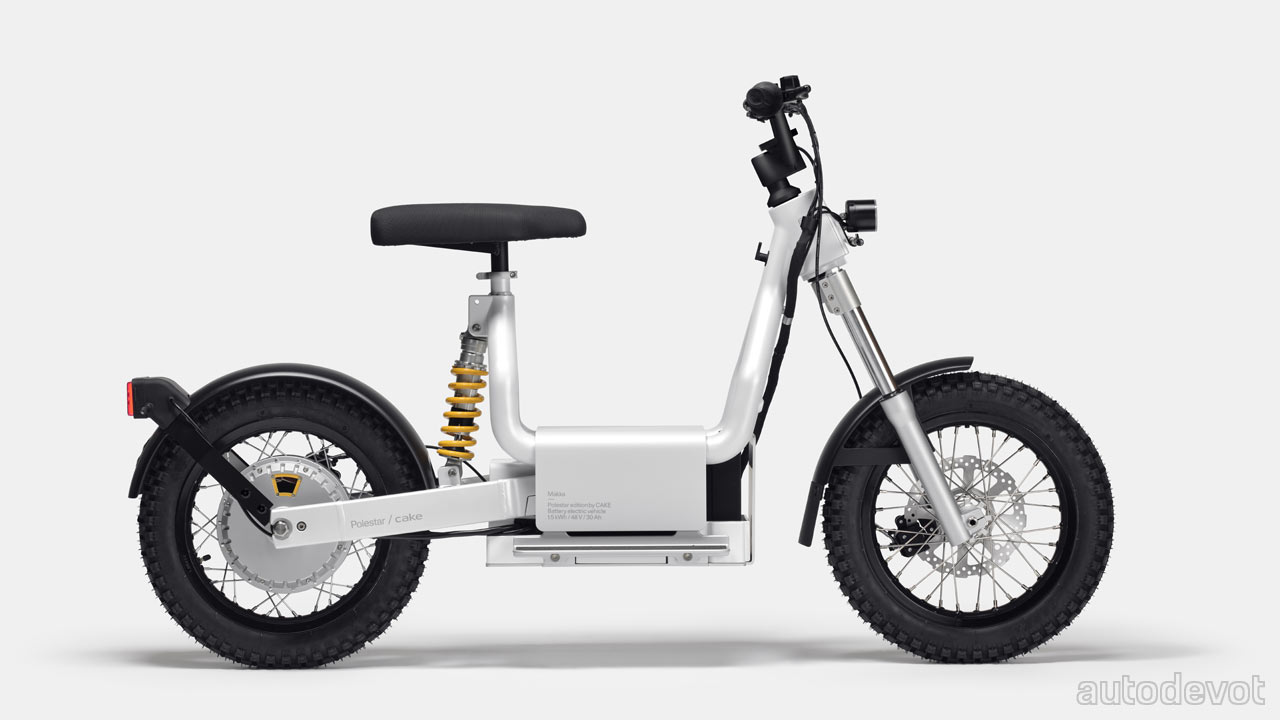The Makka Polestar edition by Cake might offer 3.6 kW (5 metric hp), a top speed of over 45 km/h (28 mph), and a range of around 50 km (31 mi).