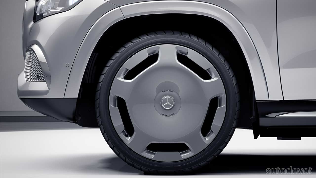 It’s the same deal with the GLS 600 4Matic Edition 100 SUV. Its exterior is finished in high-tech silver and nautical blue two-tone paint scheme, complemented with “Edition 100” branding on the D-pillar and wheel hub caps.