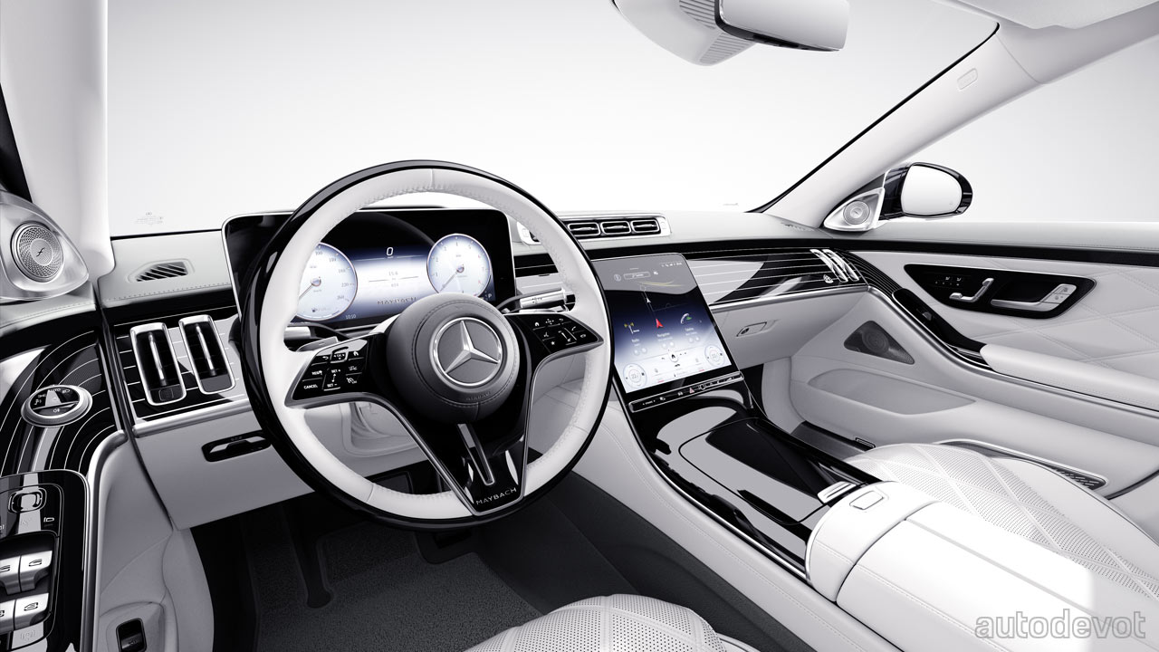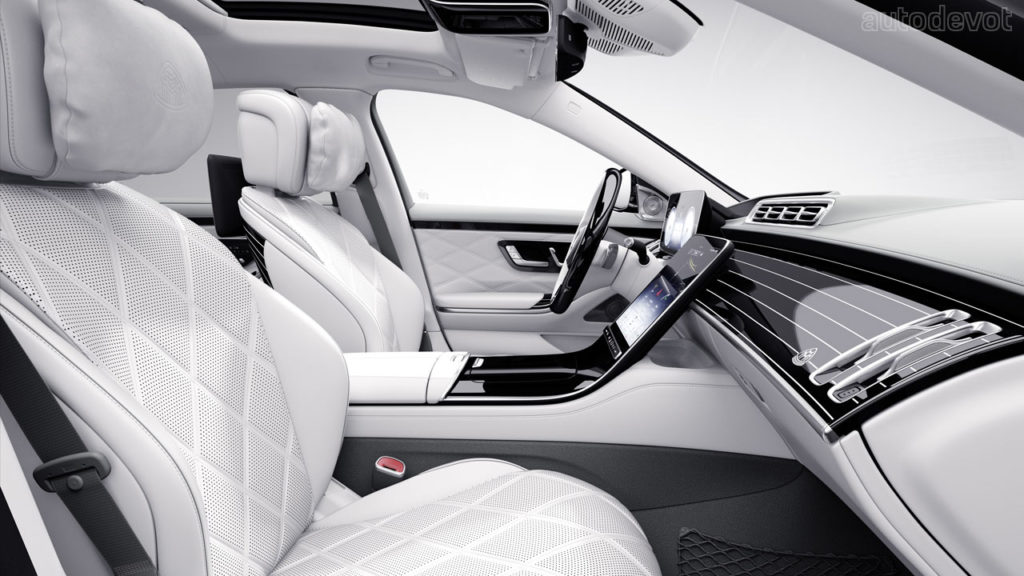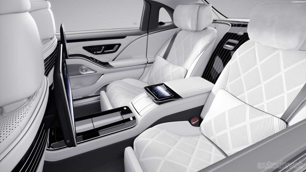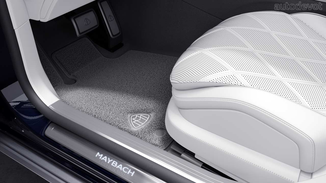 So how do you make an already uber-luxurious cabin more luxurious? You don’t. Which is why the S 680 4Matic Edition 100 gets designo crystal white and silver grey pearl combo leather upholstery, and “Edition 100” branding on the door sills, dashboard and a couple more places.
