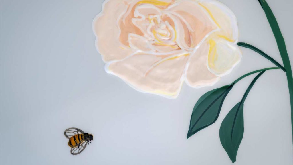 The 42-acre Rolls-Royce site in Goodwood is also home to about 300,000 English honeybees which reside in six traditional wooden beehives. The bees forage across the site, and on the 12,000-acre Goodwood Estate, to produce what is billed as “the Rolls-Royce of Honey”. Another specialty of the site is the Phantom Rose—an English Tea Rose bred especially for Rolls-Royce and found only at the marque’s headquarters. And so, Allie Knight, one of the exterior finishing artisans at Rolls-Royce, got inspired by these two specialties of the site and used a Phantom‘s bonnet as a canvas for a special artwork.