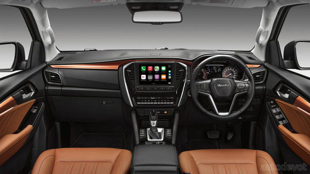 ADAS include the usual stuff such as Autonomous Emergency Braking, Post-Collision Braking, Forward Collision Warning, Lane Departure Warning, Blind Spot Monitoring, Rear Cross Traffic Alert, Adaptive Cruise Control with Stop & Go function, and a few more. Passive safety includes 8 airbags. For Australia, the MU-X also boasts a 5 star ANCAP rating.