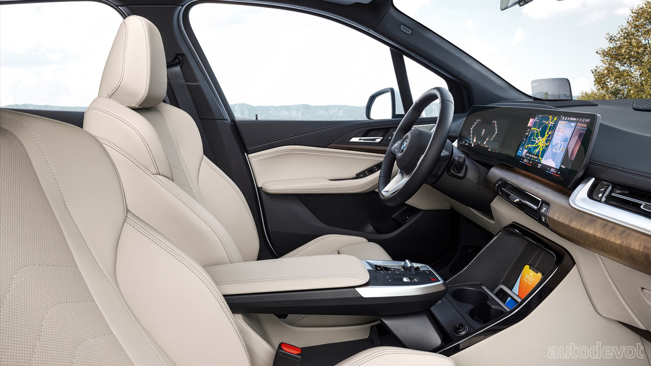 The 2 Series Active Tourer continues to be built on the UKL2 platform but has now grown in dimensions, of course. The second-gen model measures 4,386 mm long (+44 mm), 1,824 mm wide (+24 mm) and 1,576 mm tall (+21 mm). The wheelbase, however, remains unchanged at 2,670 mm. The styling updates are fairly obvious; the new model gets a larger Kidney grille, new standard LED headlights (Adaptive LEDs are optional), flush door handles, new taillights, and new wheel designs (16-inch standard, up to 19-inch light-alloys are available). It’s the M Sport package that looks a touch more sporty compared with the Luxury Line. BMW claims that the optimized aerodynamics have resulted in a drag coefficient of 0.26 Cd.