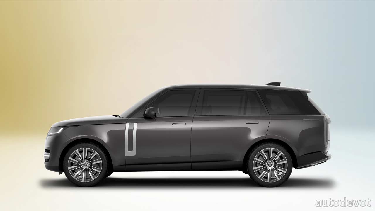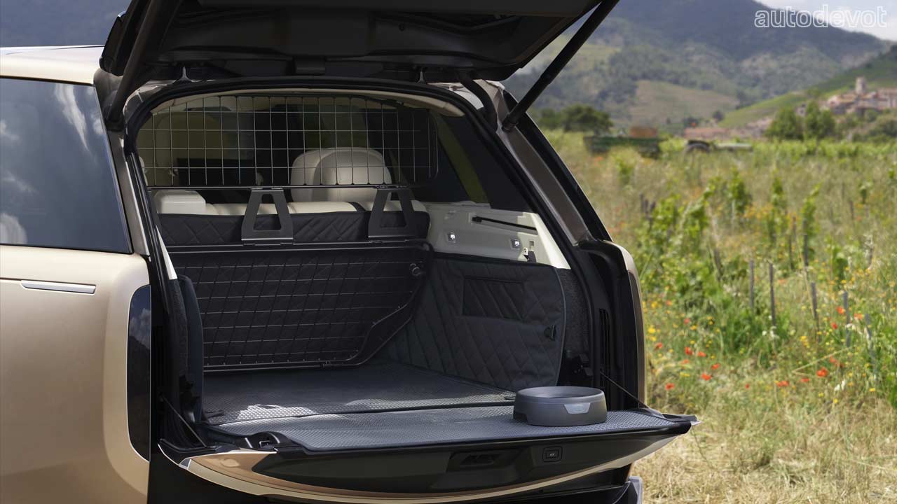 The new Range Rover is built on a new MLA-Flex architecture that enables both Standard and Long Wheelbase bodystyles with 4-, 5- or 7-seat configurations. The new architecture is also claimed to deliver, among other things, a “serene cabin calmness”. As for the styling, I think it pretty much speaks for itself; it’s a clean styling with reduced lines—so much so that the new Range Rover looks like a concept vehicle from certain angles. The front fascia and side profile are very much recognizable as a Range Rover, but the rear-end is where things get pretty interesting. There’s a black panel in the middle of the tailgate with a large Range Rover branding. And in case you’re wondering where the lights are, well, the turn signals are “hidden” in that horizontal black panel, and so are the taillights in those vertical blacked-out panels.