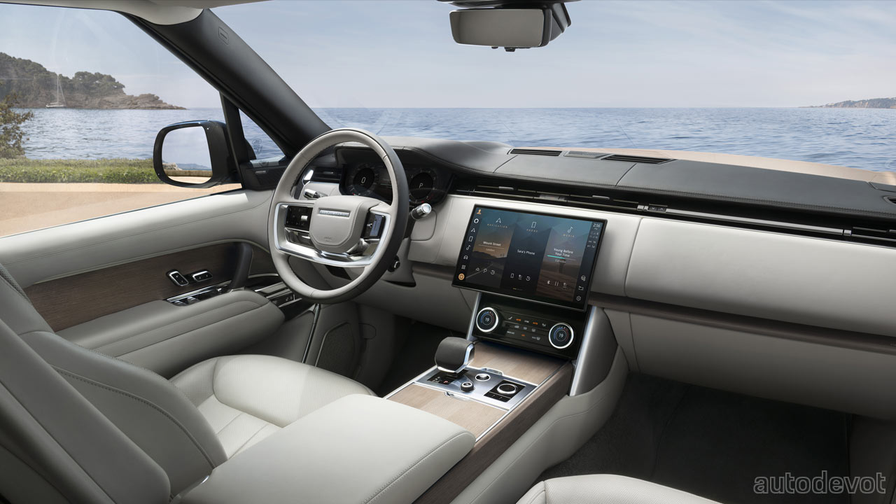 Other exterior features include Digital LED headlights with a throw of up to 500 metres, and Adaptive Front Lighting technology to ensure that the other road users are not dazzled. The two-piece split tailgate that has been a Range Rover hallmark since 1970 is also updated for 2021. All-wheel steering is standard across the lineup. The new Range Rover is also the first Land Rover to feature the optional Power Assisted Doors with integrated hazard detection and anti-pinch safety systems. The doors can also be controlled via the Pivi Pro screen—for what is claimed to be “elegant entry and exit” in any situation, including at angles of up to 10 degrees while off-roading.