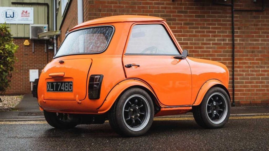 This cartoon-ish looking contraption is reportedly up for sale in the UK. Someone decided that a 1968 Morris Mini wasn’t already “mini” enough and chopped off the wheelbase, rear side windows and seats, and essentially shrunk the car into what it has become now. Needless to say, it looks cute. Those wheel arch extensions remind me of the Japanese tuner Liberty Walk.