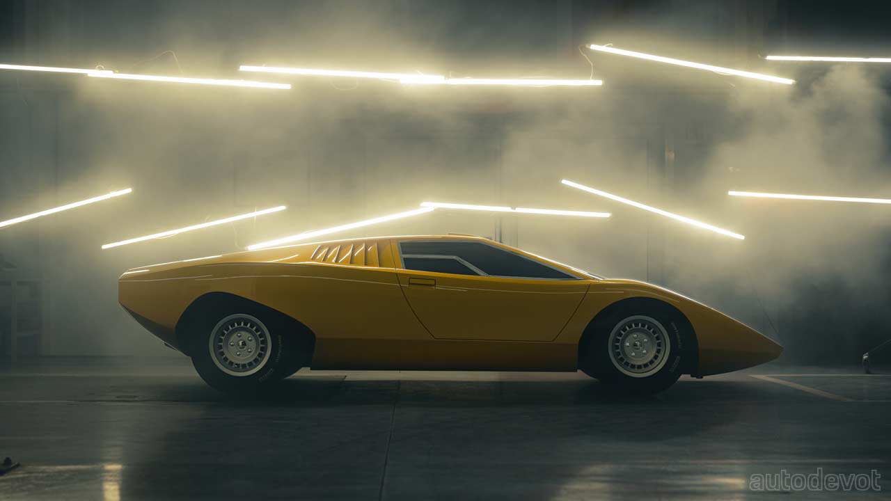 Nope, this ain’t another return of Countach nameplate, nor it has anything to do with the Countach LPI 800-4 that we saw in August. What it is, is essentially a replica of the first-ever Countach prototype—designated as LP 500, which debuted at the 1971 Geneva Motor Show. Unfortunately, the prototype was sacrificed in crash tests in March 1974 and disappeared into the history books. Which is why an individual who Lamborghini describes as “a classic car aficionado and important Lamborghini customer” approached Polo Storico—Lamborghini’s restoration division, in 2017, with a request to re-create the Countach LP 500.
