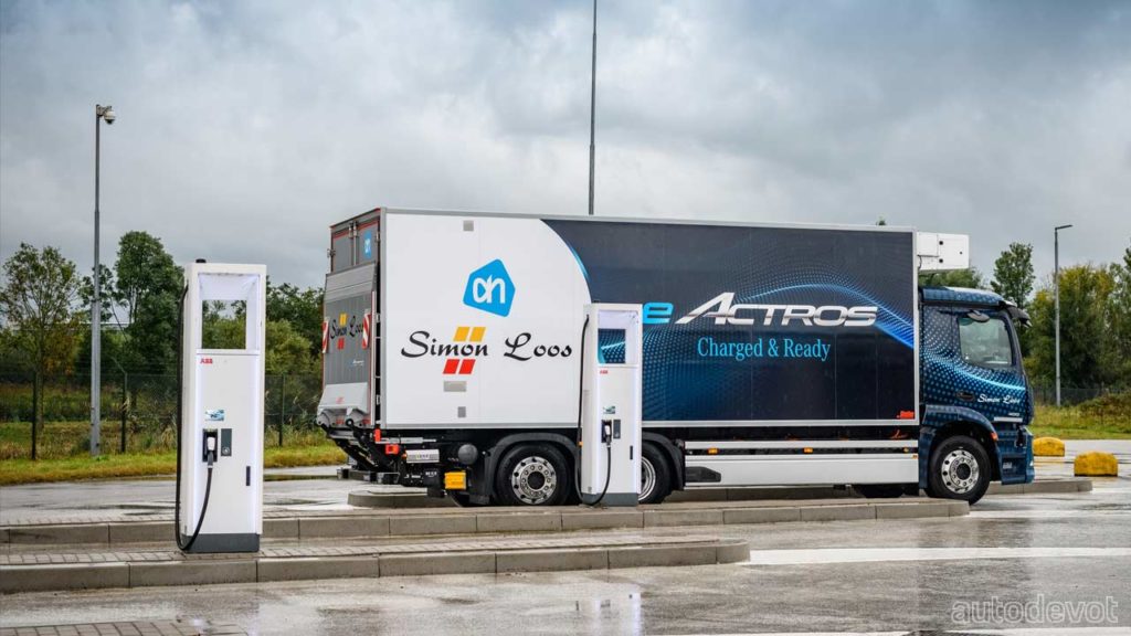 Simon Loos, a leading logistics company based in the Netherlands will use an eActros equipped with a refrigerated box for the Albert Heijn supermarket chain. The daily tour of the eActros starts at Albert Heijn’s regional distribution centre in Delfgauw, in the province of South Holland. From there, the e-truck supplies supermarket stores in various cities in the region, including Rotterdam. The eActros will run seven days a week, covering up to 300 km per day.
