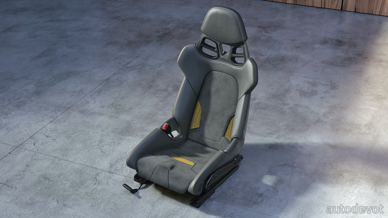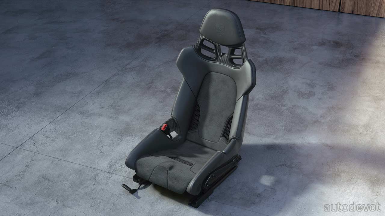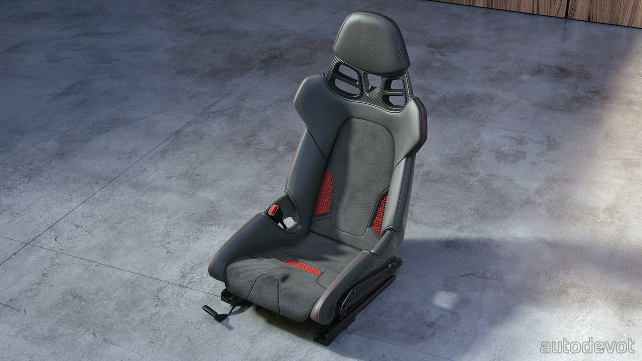 The seat is now available to order from Porsche Tequipment for certain Boxster, Cayman and 911 models, and can be retrofitted at a Porsche Centre in a few minutes. The seat is available for both driver and passenger, but depending on the vehicle’s production date, only the driver’s seat will be available. In the U.S. market, only the driver seat is available, and if you live in China or Taiwan, these seats are not available at all. From February 2022, the seat can also be ordered from Porsche Exclusive Manufaktur and will be integrated into the Porsche Car Configurator as well.