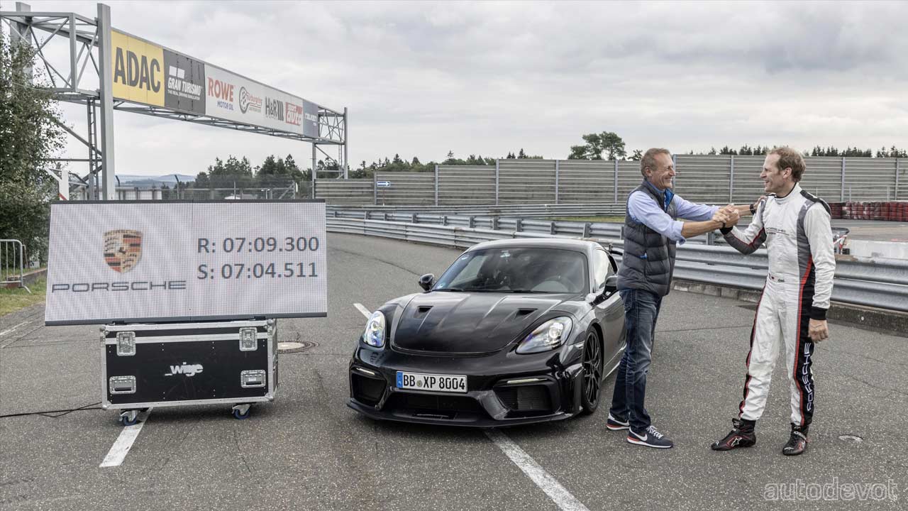 The record car ran on Michelin Pilot Sport Cup 2 R tyres which will be a factory option. A racing seat for the driver was another addition. “During development, we gave the 718 Cayman GT4 RS everything that characterizes a genuine RS: lightweight construction, more downforce, more power and, of course, an even higher level of responsiveness and feedback to driver inputs,” said Andreas Preuninger, Director of the GT division. “The fantastic lap time of the Nordschleife is an impressive proof of how clearly noticeable these improvements in driving dynamics are. Our customers can look forward to a pure driver’s car that makes a thrilling driving experience an absolute priority,” added Preuninger.