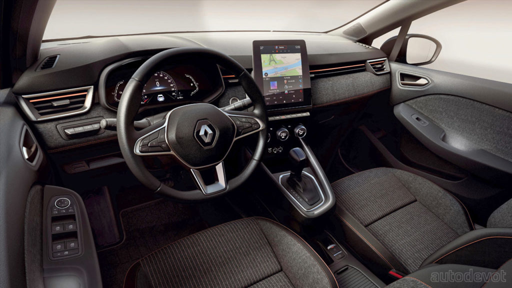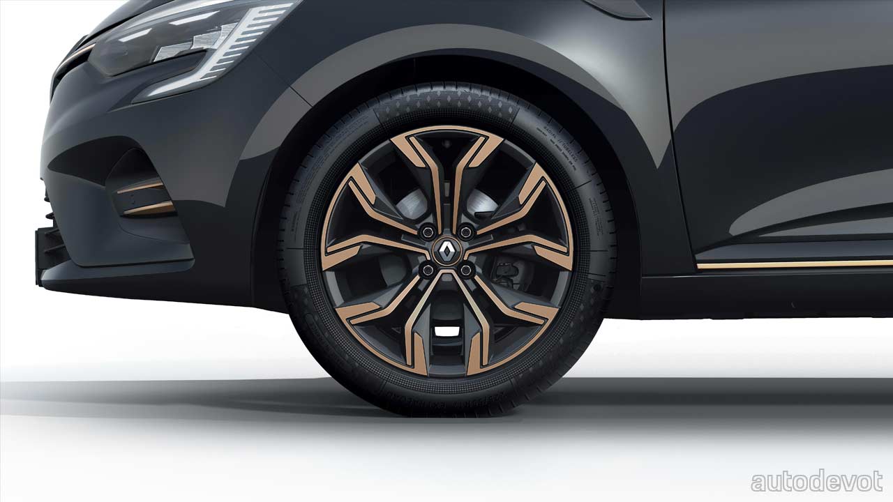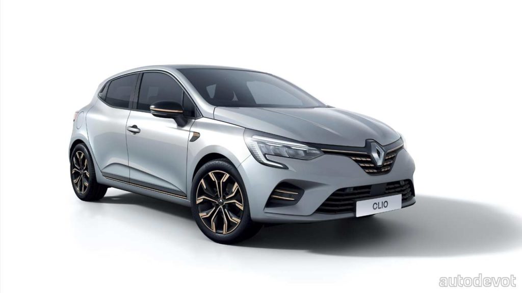 Inside, the Clio Lutecia features 100% bio-based fabric upholstery on the dashboard, PET upholstered seats, and matt brass contrast accents. In terms of equipment, the Clio Lutecia carries over the same features as the Intens and also gets tinted rear windows, self-dimming headlights, front parking sensors, and a reversing camera.