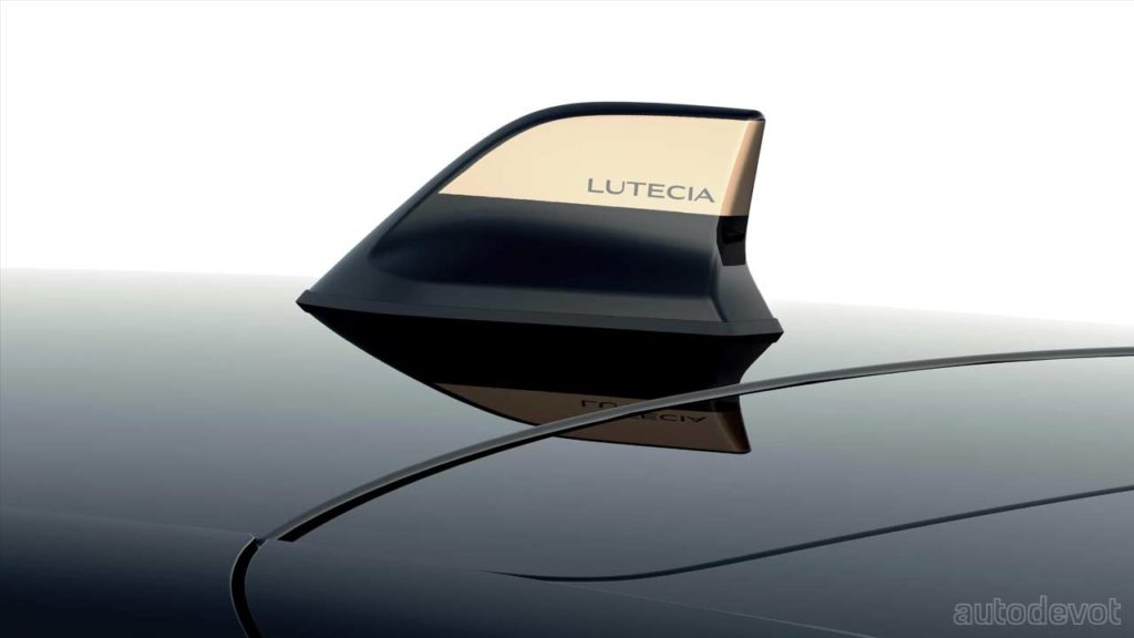 On the exterior, the Lutecia features tastefully applied brass accents on the grille, front and rear bumpers, front wings, mirror caps, door cladding, and on the ‘Vivastella’ 17-inch diamond-cut wheels as well. The shark-fin antenna features the Lutecia branding against the brass paint. Body color options include Noir Etoile, Platinum Gray, Titanium Gray, Quartz White, and Glacier White.