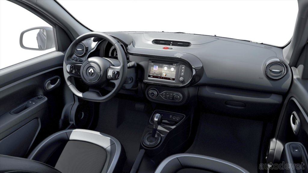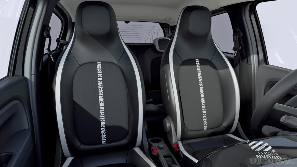 Speaking of which, the Twingo Urban Night is available in four exterior colours: Cristal White, Quartz White, Moon Grey and Diamond Black. Buyers can choose from two variants of this limited edition: a light version with stripes on the C-pillar, and a premium pack that also covers the roof and the rear doors. On both variants, the striping is available either in a clear or a dark theme to match the exterior paint. 16-inch gloss black alloy wheels, white stripes on the front lower grille, and “Urban Night X” branding on the mirrors caps are also part of the package.