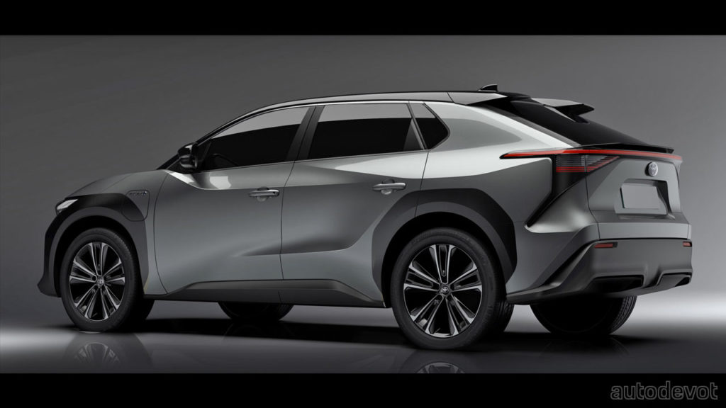 Although Toyota referred to the bZ4X as a “concept” earlier, the production version doesn’t look any different whatsoever, which is of course, not a bad thing at all. It looks just as funky as it looked before. The only difference/addition you might notice is an unnecessary “Electric” badge on the charging port flap on the front fender.