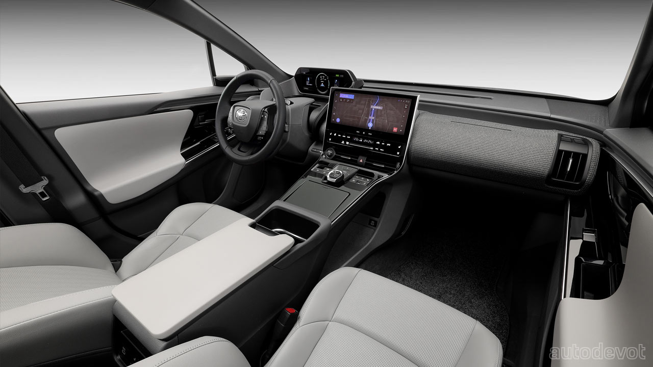 Alright then, moving on to the juicy bits of the story then, the bZ4X will be available in single motor FWD and dual-motor AWD variants. In the FWD variant, the front motor offers an output of 150 kW (204 metric hp). It appears that Toyota doesn’t wanna give too much power to the AWD variant either, since the electric motors offer an output of 80 kW each, bringing the grand total to 160 kW (218 metric hp). The AWD is claimed to take 7.7 seconds to sprint from 0-100 km/h (62 mph), should you fancy doing such things in an SUV. But either way, both variants get a 71.4 kWh, 355-volt lithium-ion battery pack that is estimated to offer a cruising range of approximately 500 km (311 mi) in FWD and 460 km (286 mi) in AWD variant. The battery pack can be DC fast-charged with up to 150 kW, which should take about 30 minutes to get to 80%.
