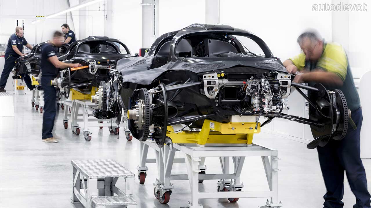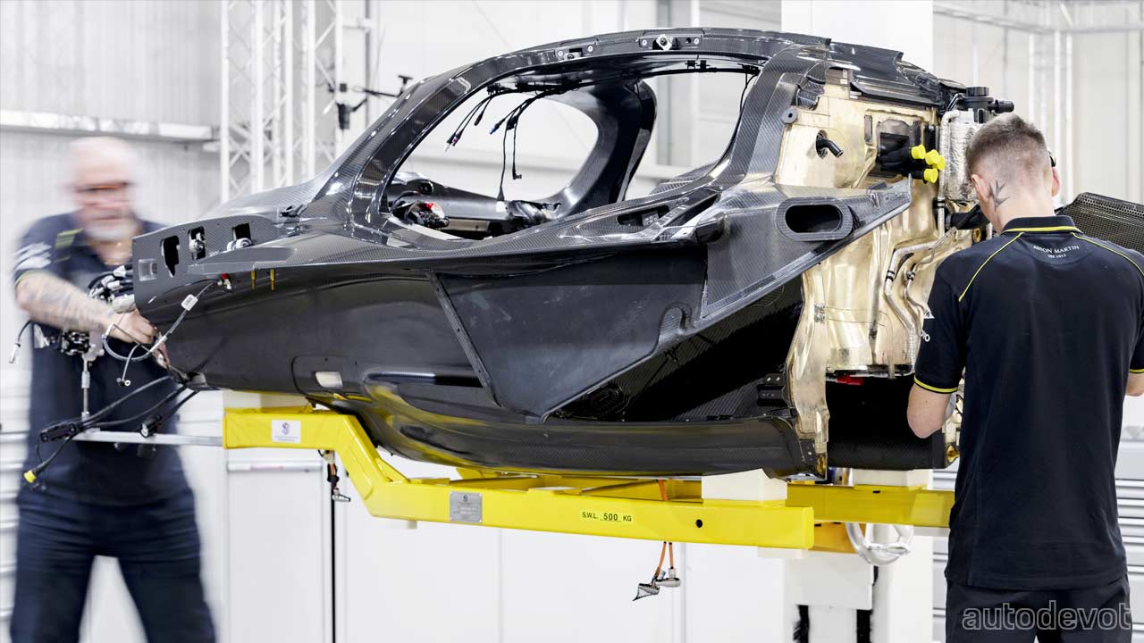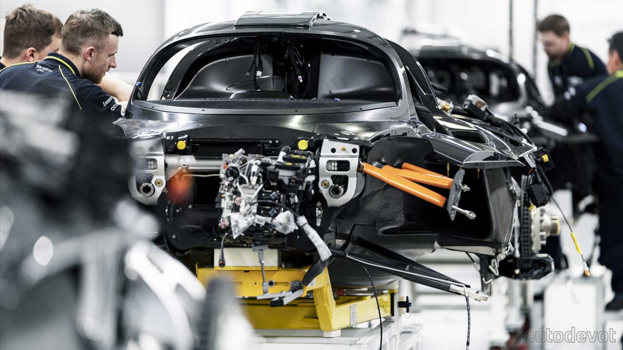 Aston Martin is now busy building the Valkyrie customer cars with deliveries as and when a car is complete and tested. A team of skilled technicians is hand-building the 150 cars, with each hypercar said to take over 2,000 man hours. Of course, it’s the Coupe version that is being built now, with the Valkyrie Spider to join the assembly line at a later date. The featured photo is of the first customer car, but check out the other photos below which reveal some interesting internals of the 850 kW (1,156 metric hp/1,140 bhp) hybrid hypercar.