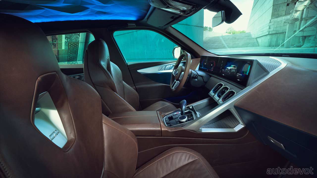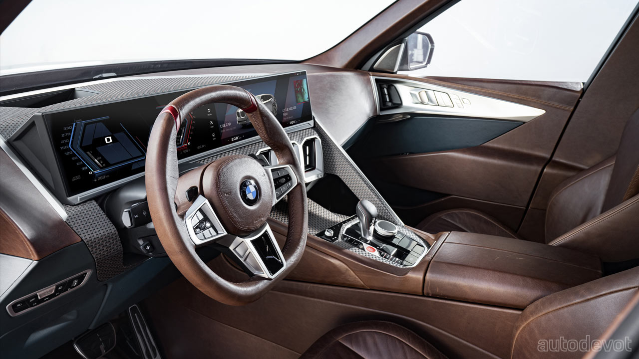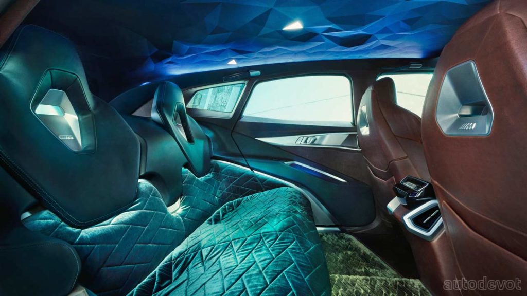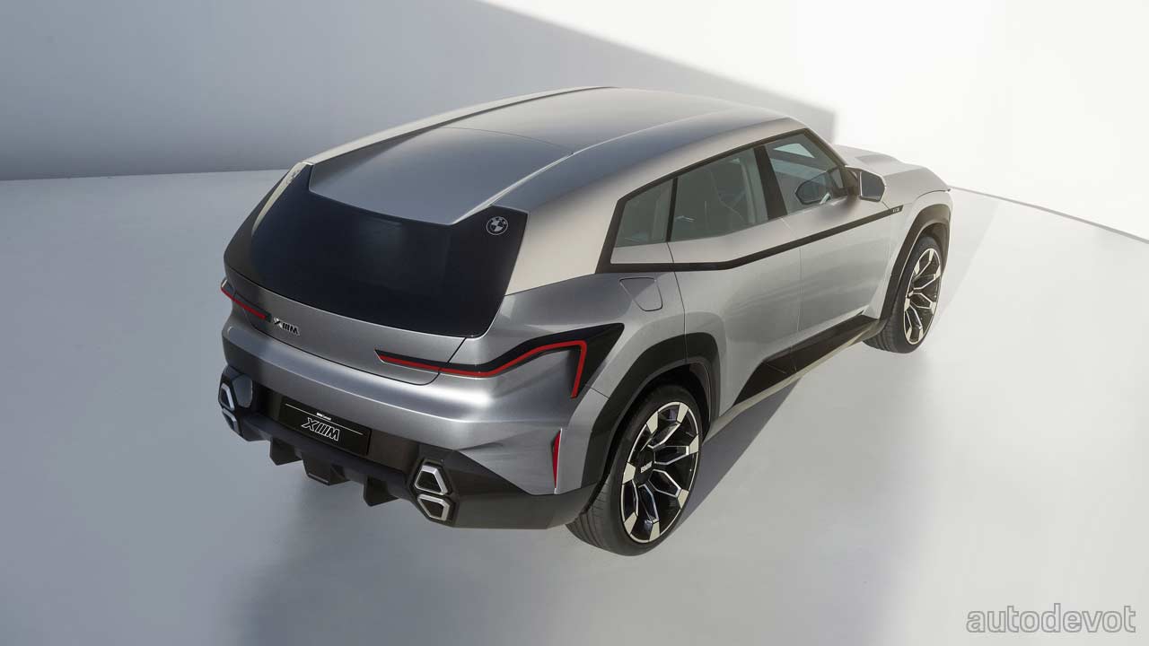 The styling is nothing surprising here; BMW’s Head of Design Domagoj Dukec and his team continue to draw polarizing lines—literal or otherwise, but I guess it has sort of grown on most of us. Although the Kidney grille is gigantic, it kinda looks proportionate with the rest of the body. The headlights are rather tiny but hopefully, the production model will have a bit bigger ones. There are generous air inlets at the front, including the side curtains and also on the bonnet; the latter are inspired by those on the M1. Notice the slim LED searchlights on the roof. Speaking of the roof, that shallow valley in the middle kinda looks weird, especially as it goes deeper towards the rear. Speaking of the rear-end, well, it looks kinda messy with those quad triangular tailpipes, but maybe that’s just me. That said, the J- or L-shaped taillights flow into the tiny tailgate, which kinda looks cool. The laser-etched BMW logos on the rear glass is a nod to the logos on the M1.