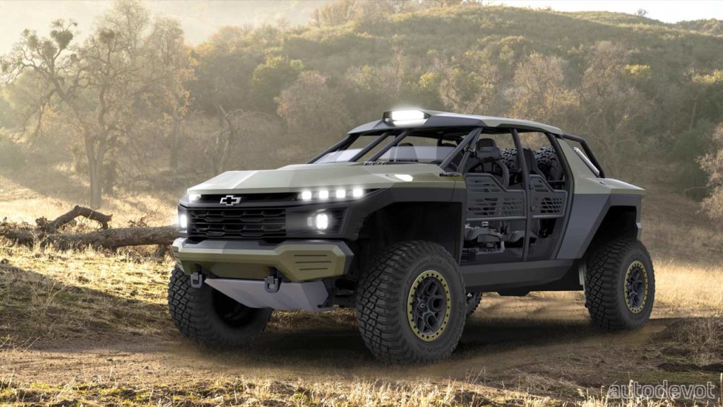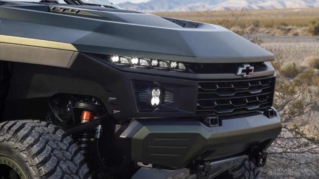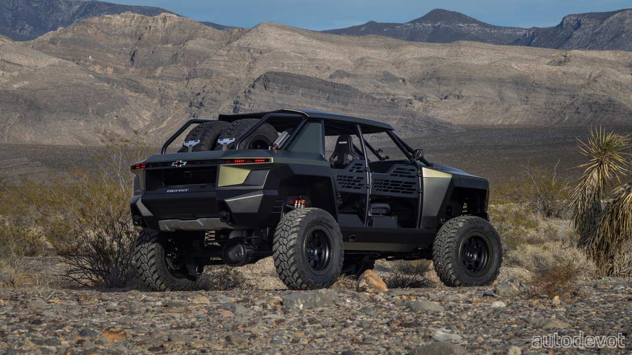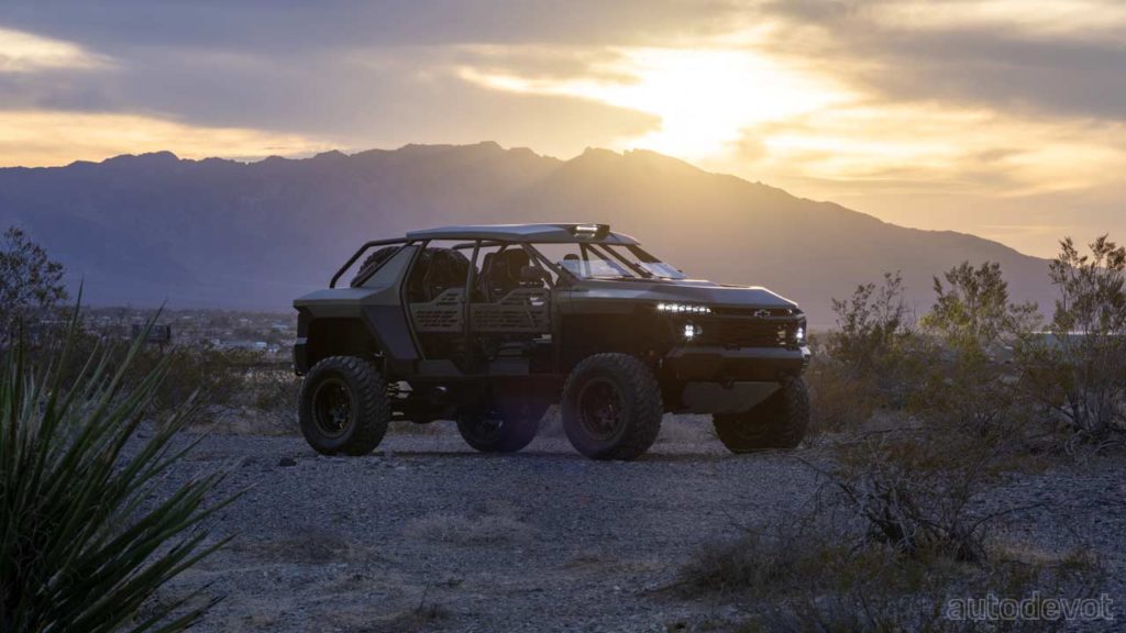 The Chevy Beast concept is powered by a 650 bhp LT4 6.2-litre V8 supercharged engine—paired with a 10-speed automatic transmission that sends torque to a 2-speed transfer case that distributes it to the aforementioned wheels.