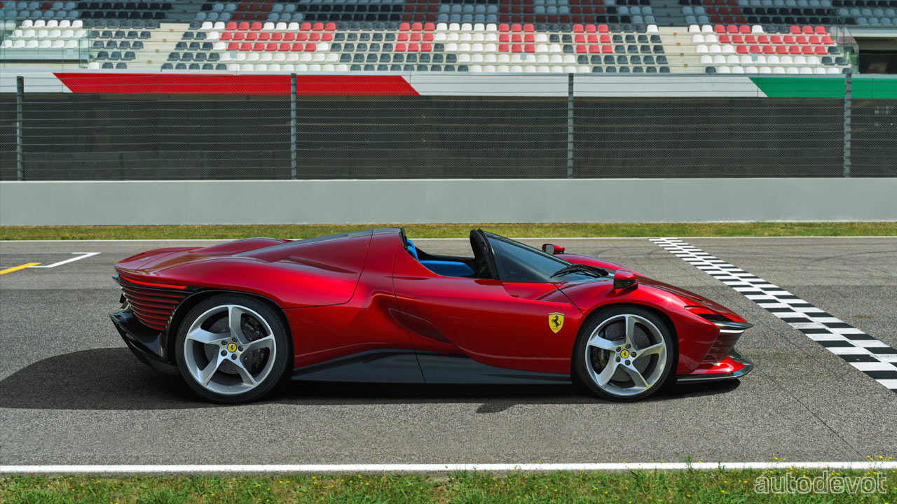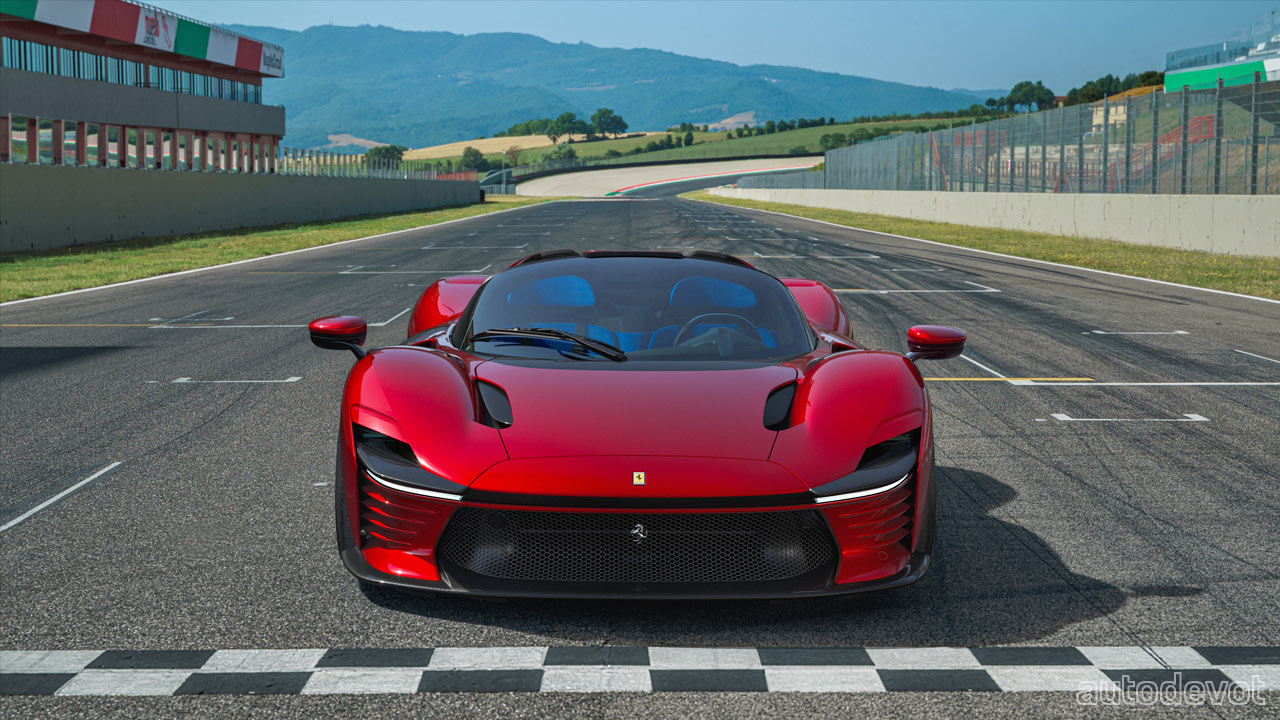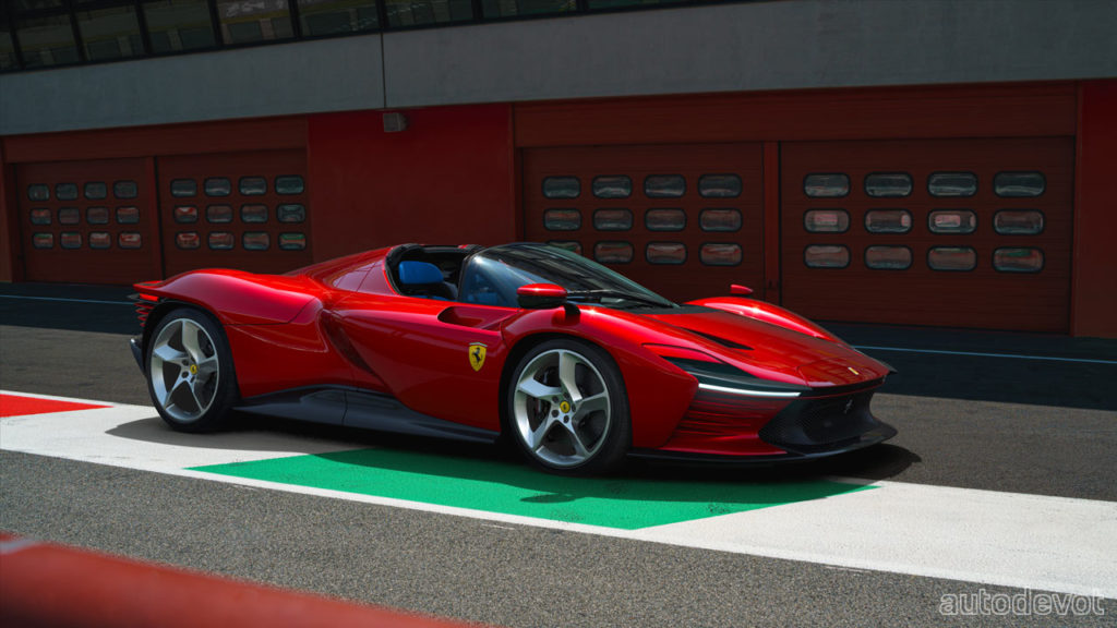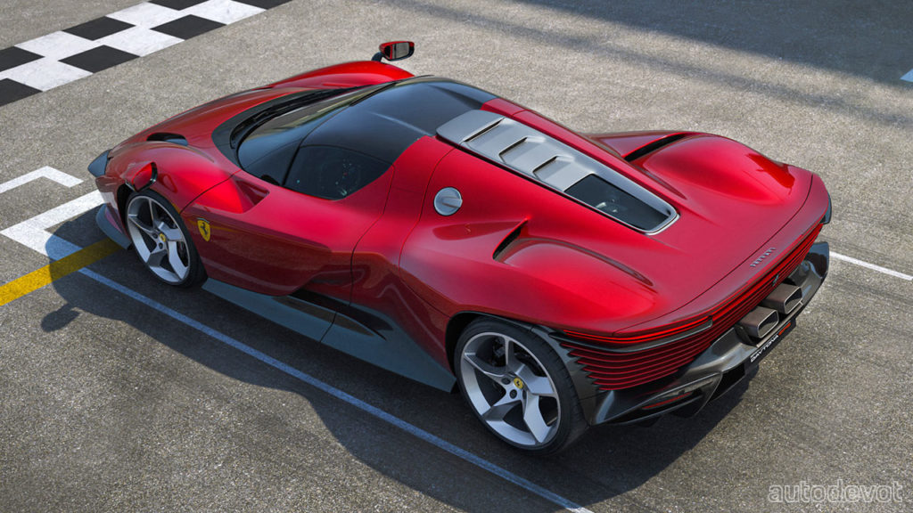 Although it seems like the front, rear and underbody of the vehicle feature active aero elements, the Daytona SP3 has none of that. In other words, there are no active aero elements here. Ferrari claims the Daytona SP3 to be its “most aerodynamically efficient car ever built without resorting to active aero devices.” And for those who are wondering, the headlights are hidden by that little flap that apparently moves—a nod to the pop-up headlights of the past. And of course, the hard-top needs to be manually removed.