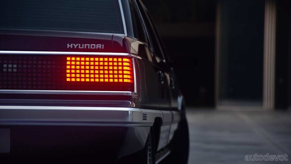 It appears that Hyundai got pumped up with all the positive responses it got for recreating the Pony hatchback, or maybe someone at Hyundai loves classics just as much as some of us. Either way, what we’re seeing here is an all-electric restomod of the original (1st gen) Hyundai Grandeur sedan—which interestingly was a rebadged Mitsubishi Debonair. It was only from the 3rd generation the Grandeur was a full Hyundai.
