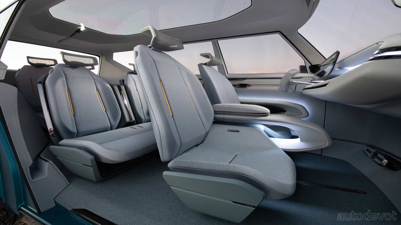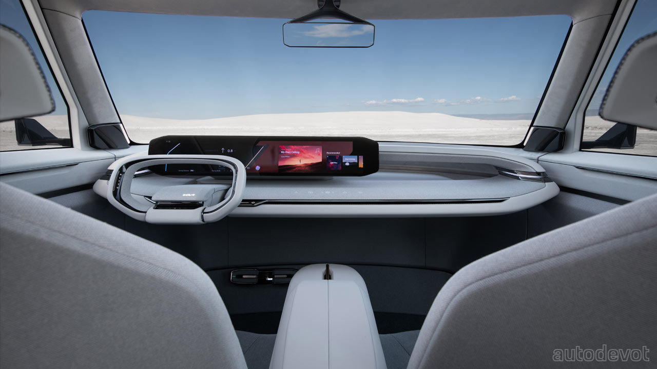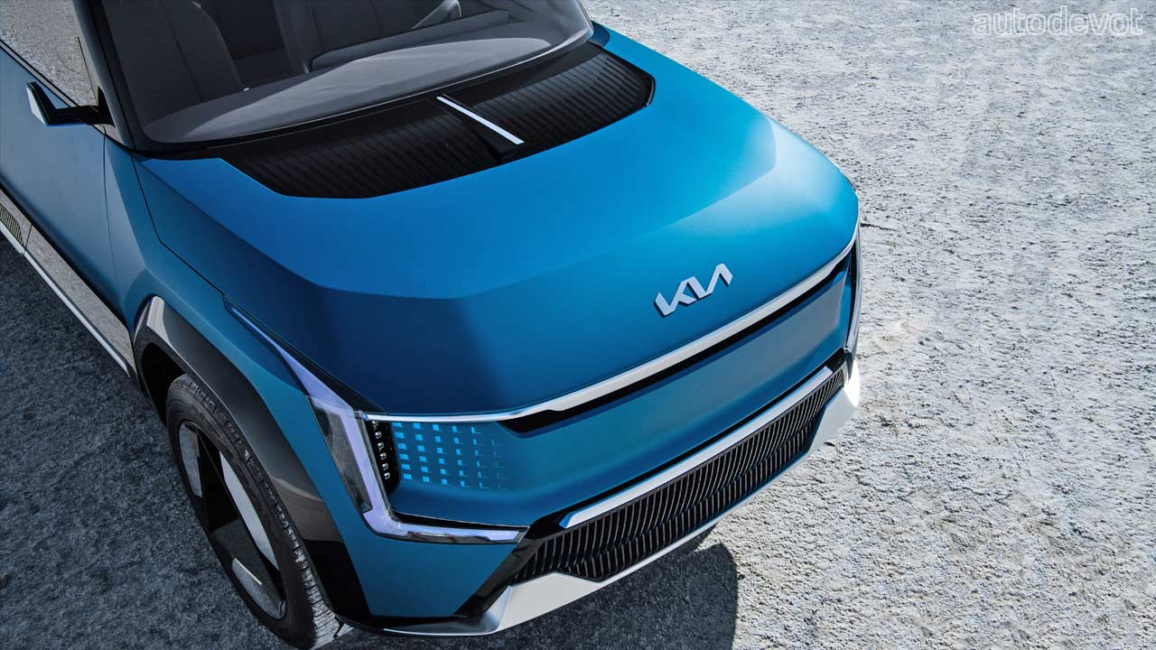 That hood vent duct area is lined with solar panels which offer the drivers an alternative source of energy when they are not close to a charging station. For those interested to know the dimensions, the EV9 concept measures 194-inches (4,928 mm) long, 81-inches (2,057 mm) wide, 70-inches (1,778 mm) tall, and boasts a wheelbase of 122-inches (3,099 mm). It rides on 22-inch aerodynamic wheels.