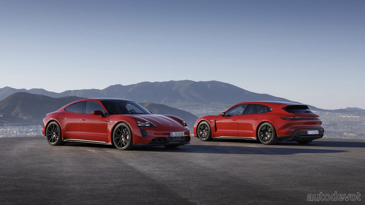 Porsche is expanding the Taycan lineup with the Taycan GTS—available in both regular coupe and Sport Turismo (Cross Turismo) bodystyles, with prices in Germany (including 19% VAT) starting at €131,834 and €132,786, respectively. Dealer deliveries are expected to commence in the spring of 2022. The two BEVs will make their public debut at the LA Auto Show along with the Cayman GT4 RS models.