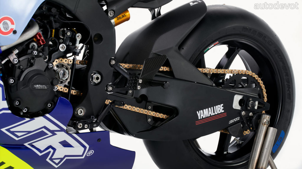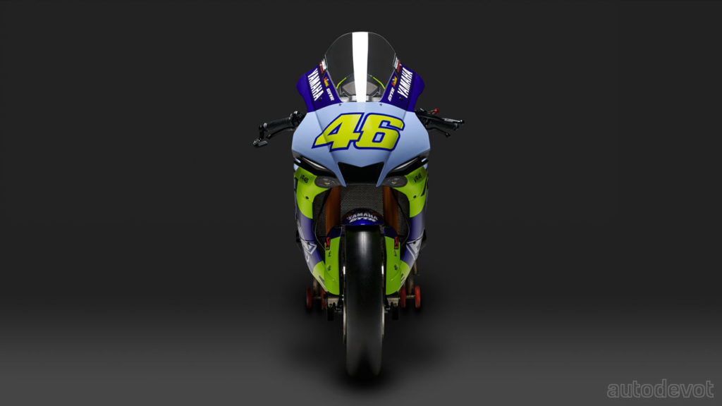The R1 GYTR VR46 Tribute is powered by a 998 cc in-line 4-cylinder engine. The racing motorcycle was presented to Rossi at the 2021 EICMA show in Milan, Italy.